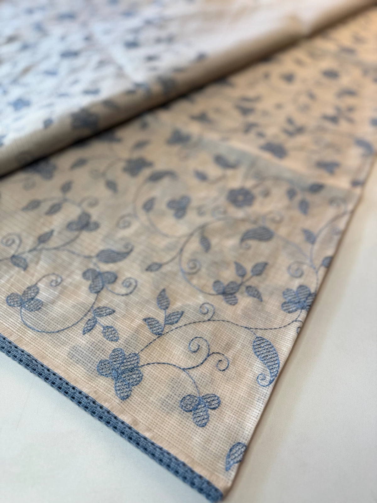 Silky Kota Saree featuring a delicate crochet border and beautifully detailed thread-worked body. Comes with a contrast printed blouse piece in matching Silky Kota fabric, adding a stylish and elegant touch. Lightweight and easy to drape — perfect for festive and semi-formal occasions.