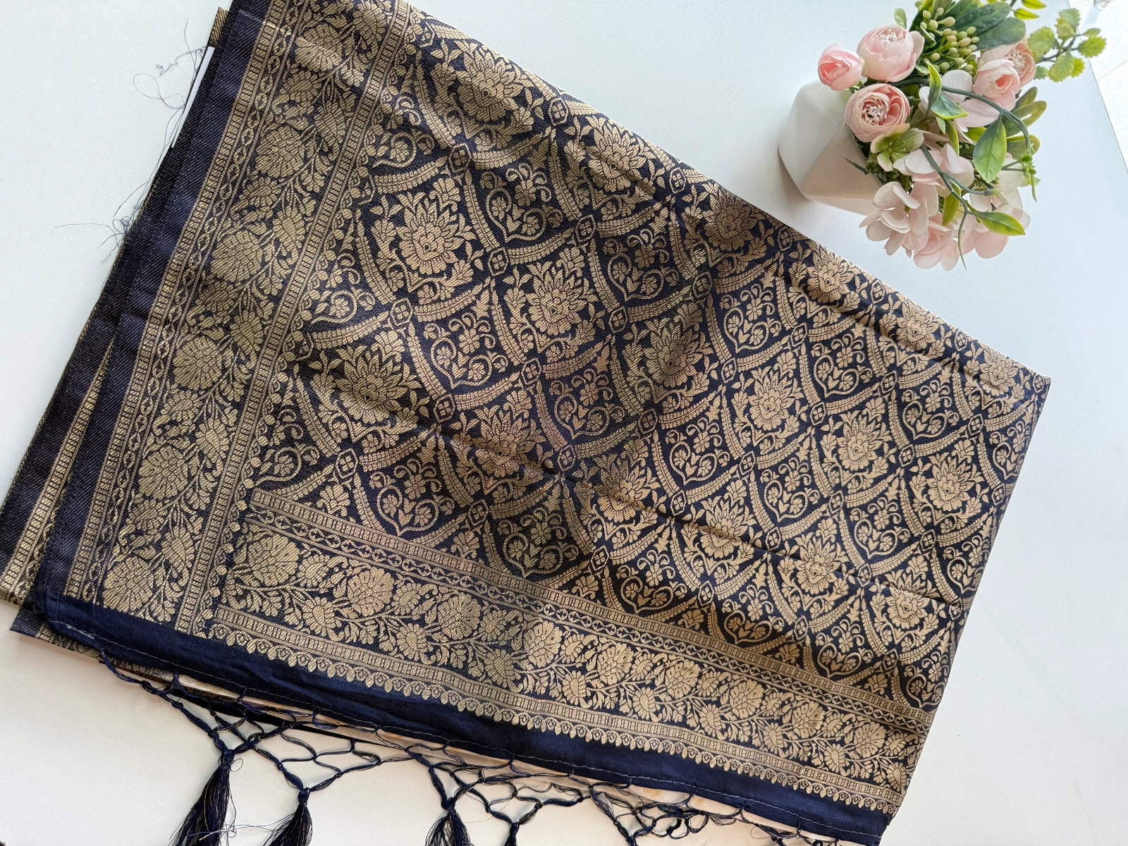 Drape yourself in timeless elegance with this Banarasi Weaved Georgette Saree, crafted to perfection with a rich contrast border and blouse piece. The saree features intricate zari weaving that adds a regal charm to its soft, flowy drape — making it perfect for festive occasions and celebrations.