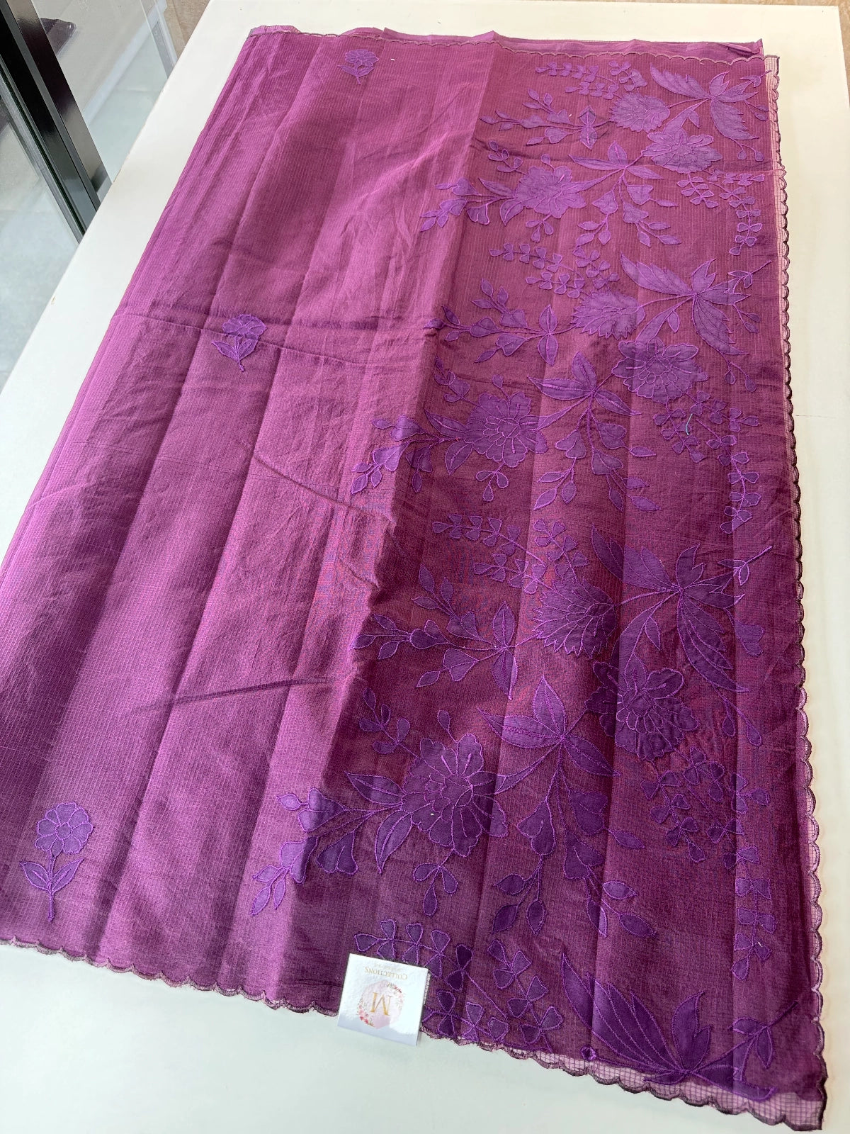 ✨ Net Kota Saree with Tone-on-Tone Appliqué Work ✨
