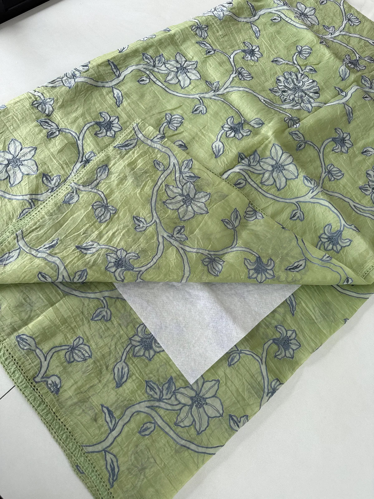 Comes with a plain running blouse piece, beautifully finished with sleeve-end lace detailing that mirrors the saree border — subtle, stylish, and effortlessly chic.