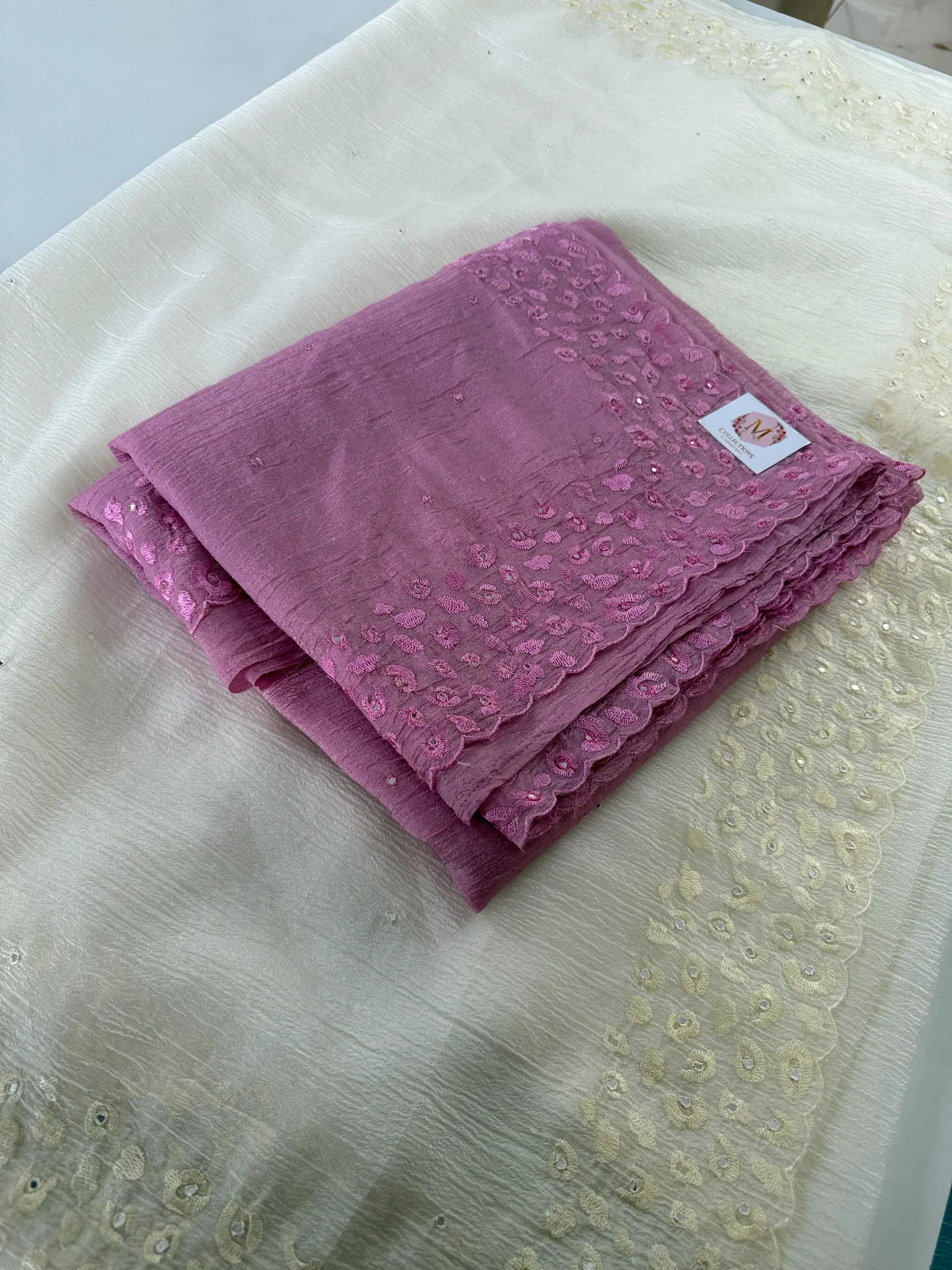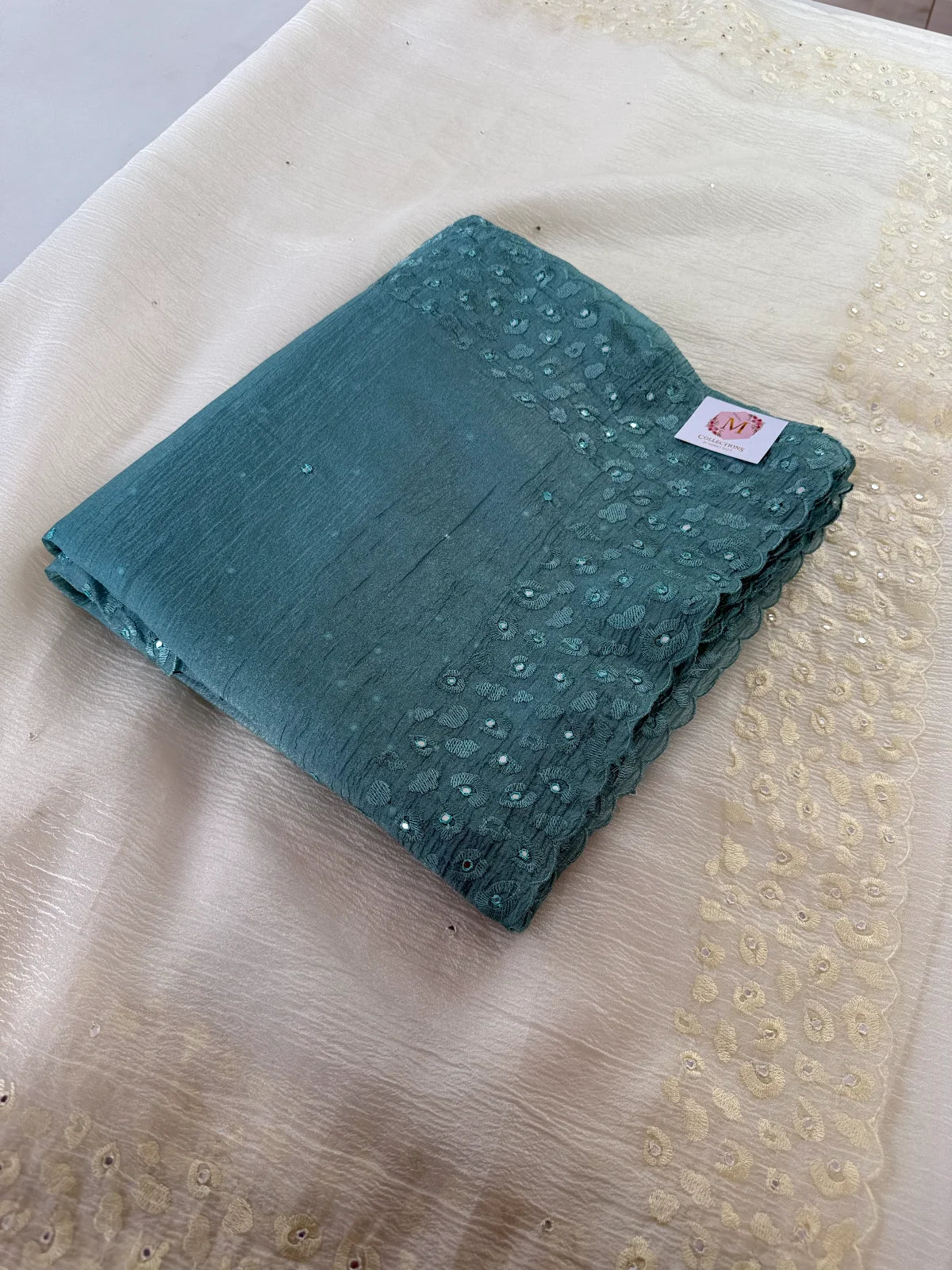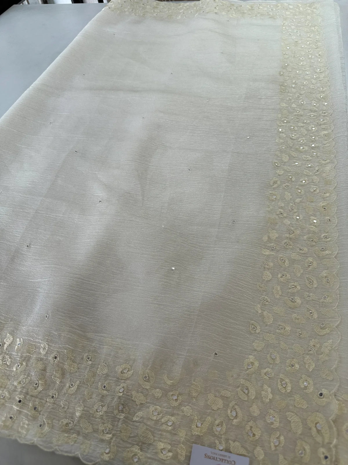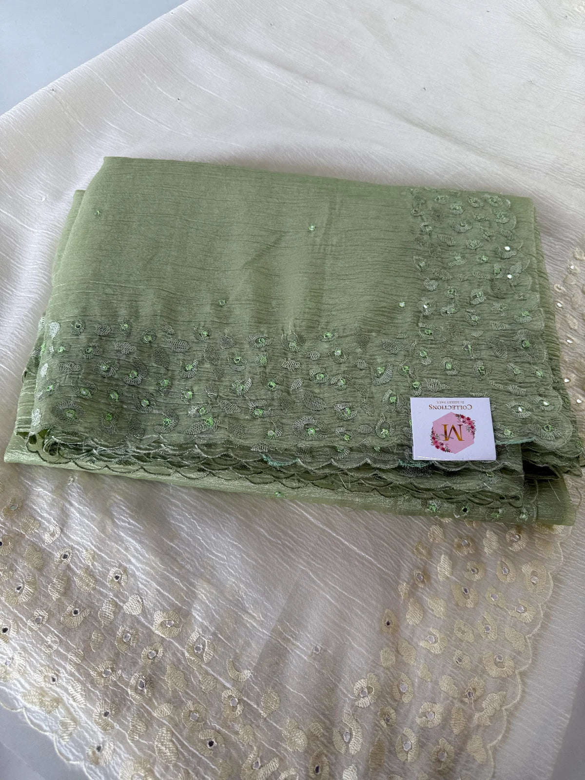 Fabric:crushed crape saree with  same toned thread worked and sequence embellished boarder