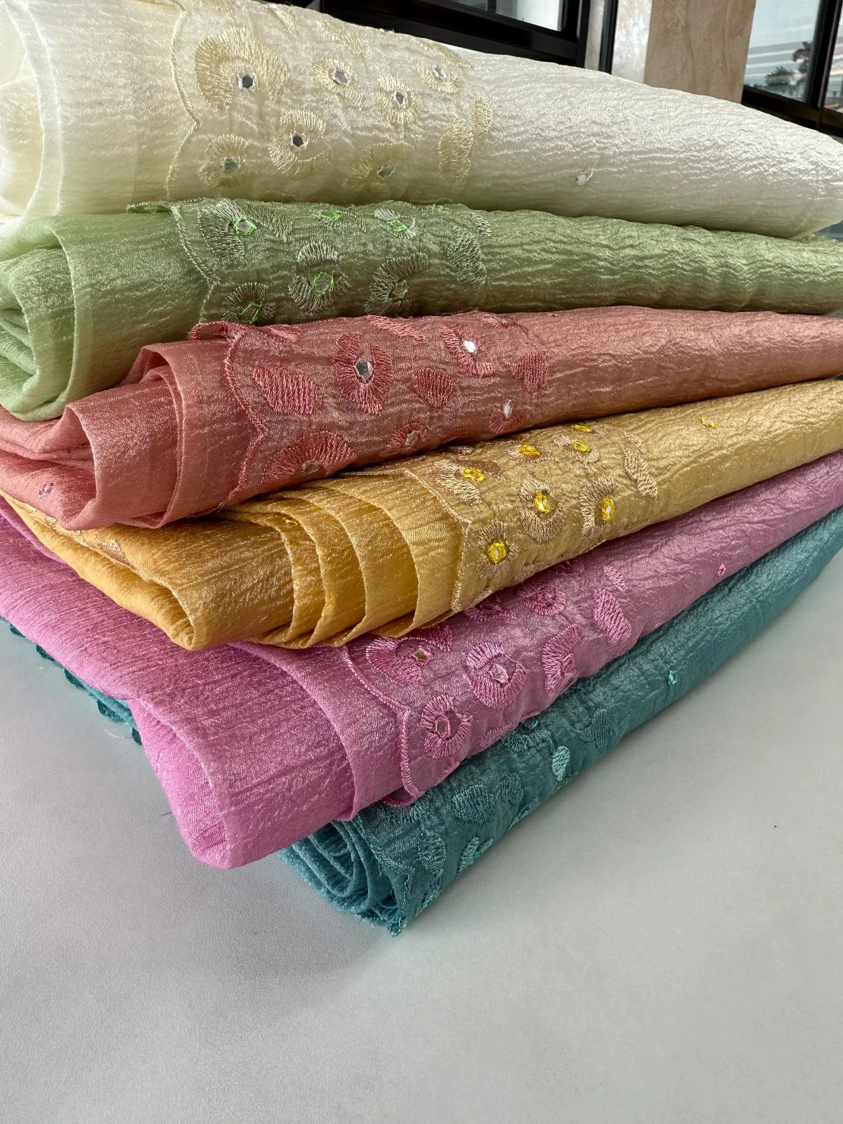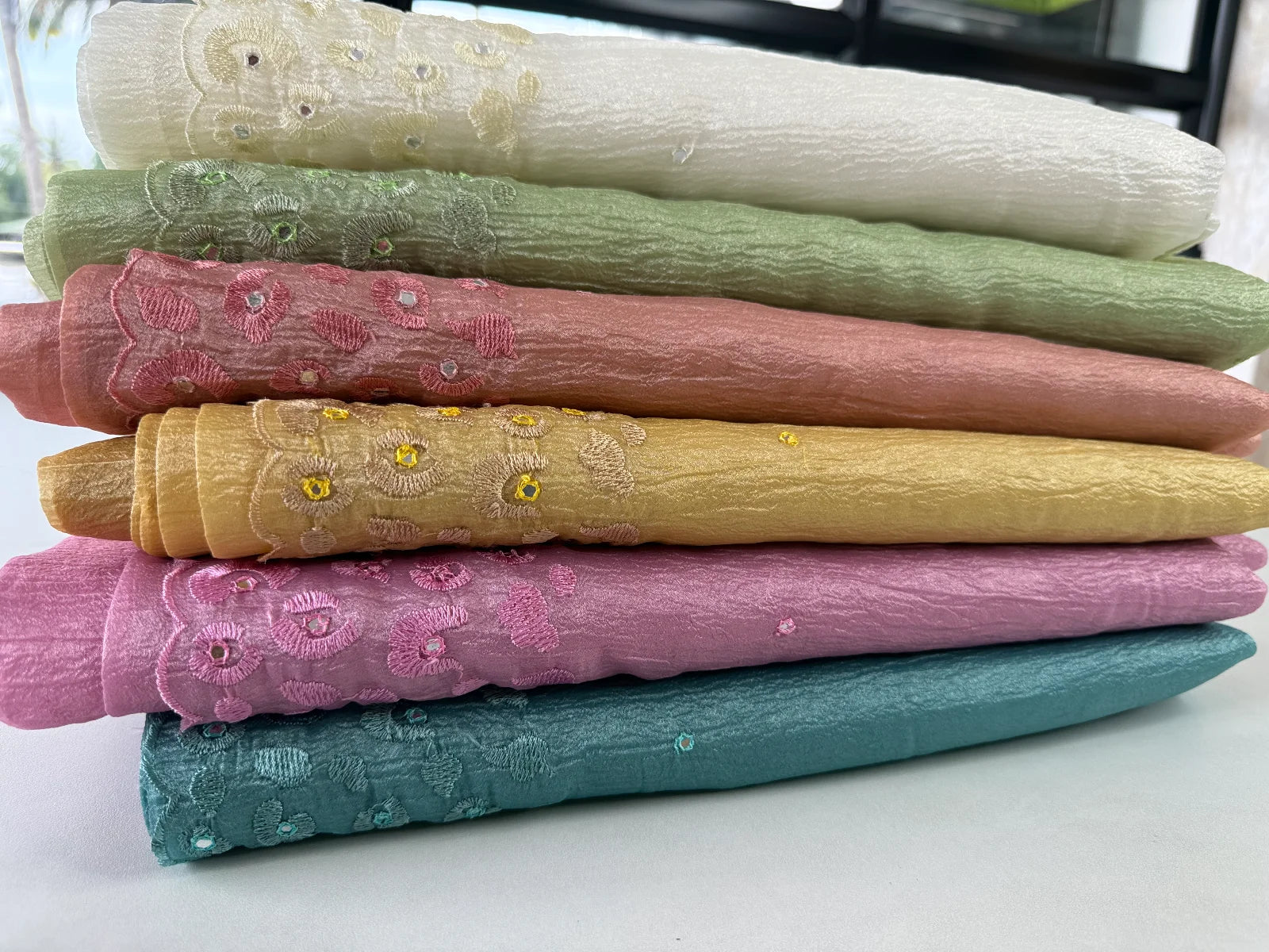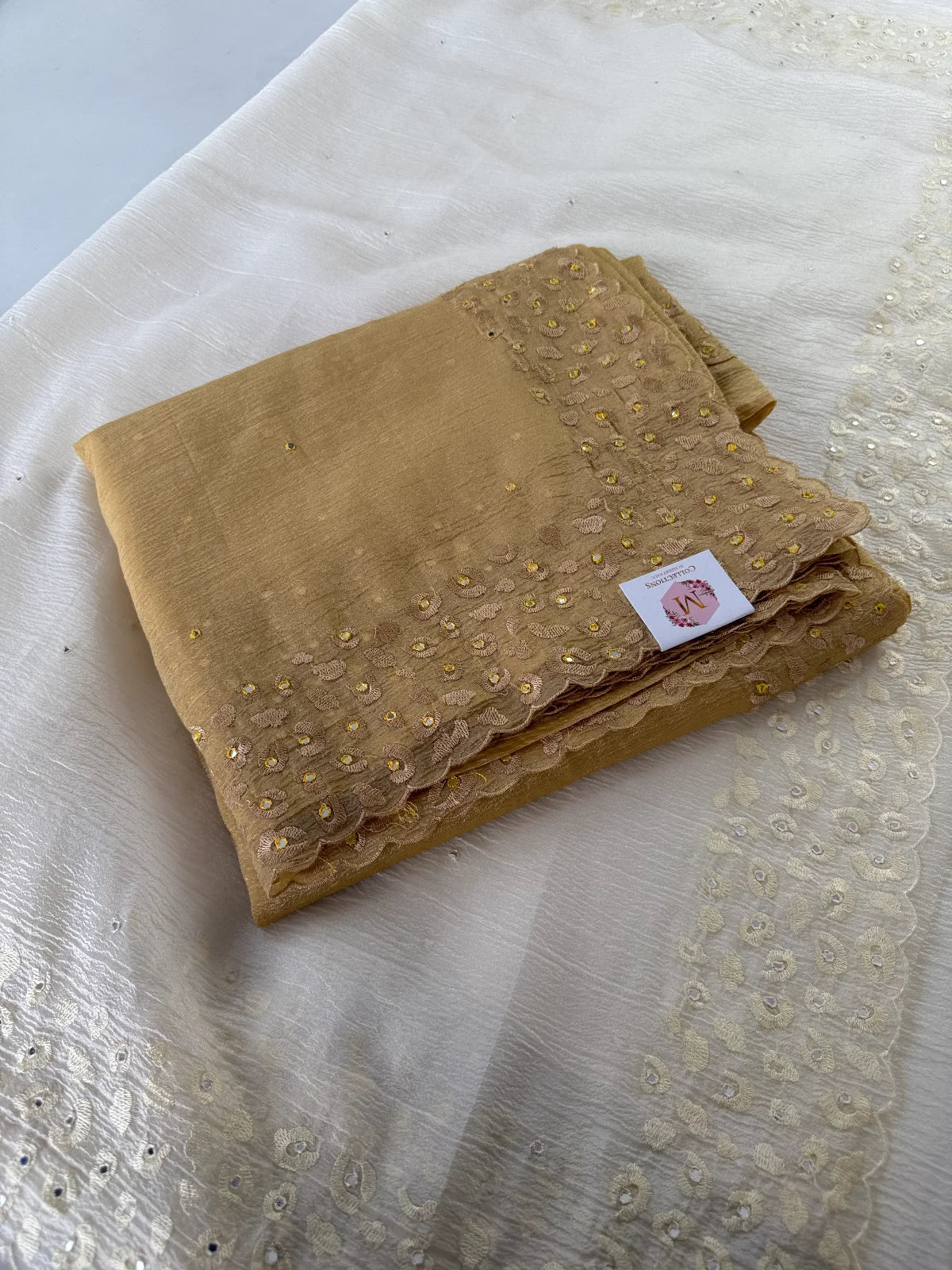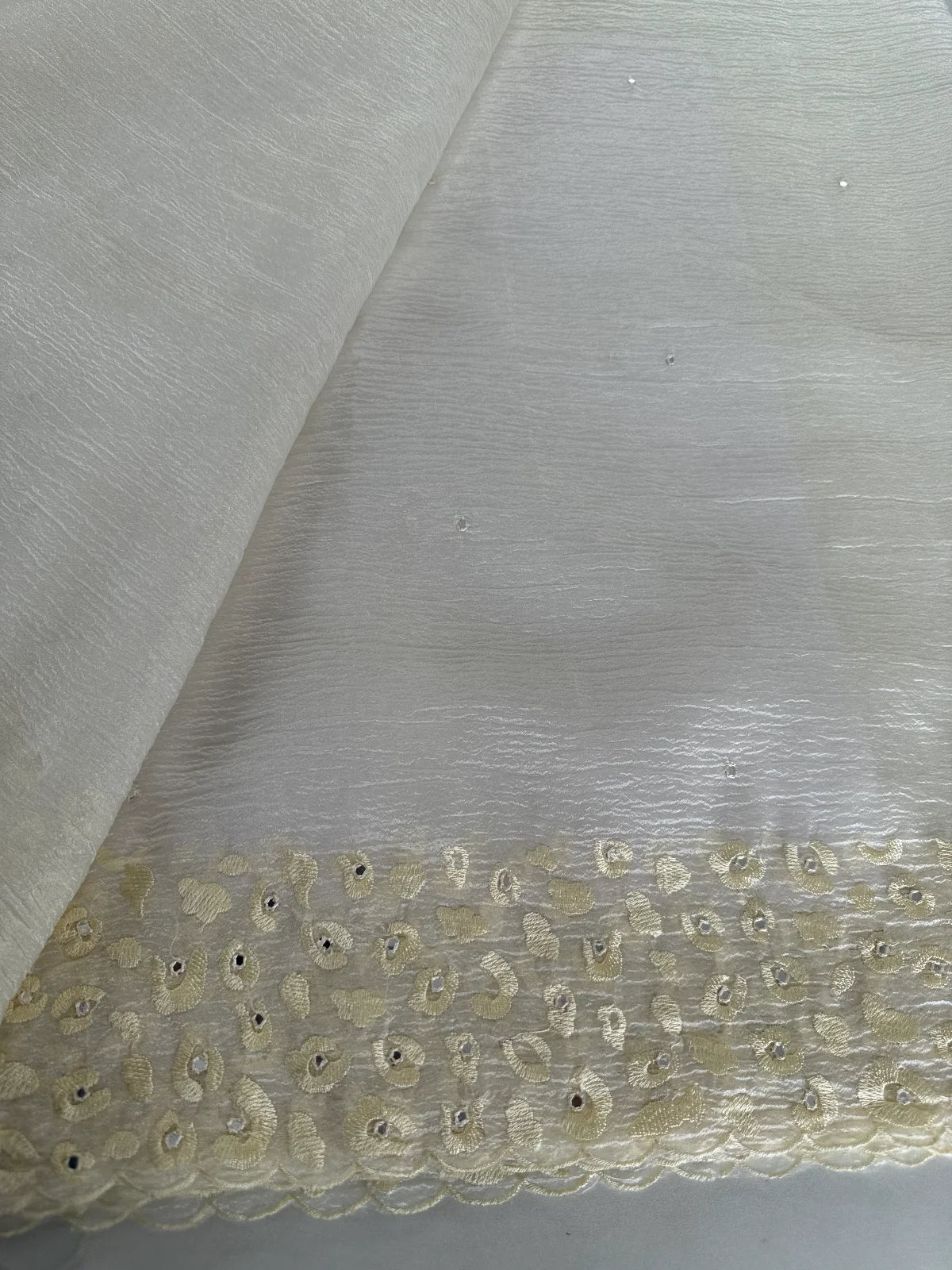 Fabric:crushed crape saree with  same toned thread worked and sequence embellished boarder