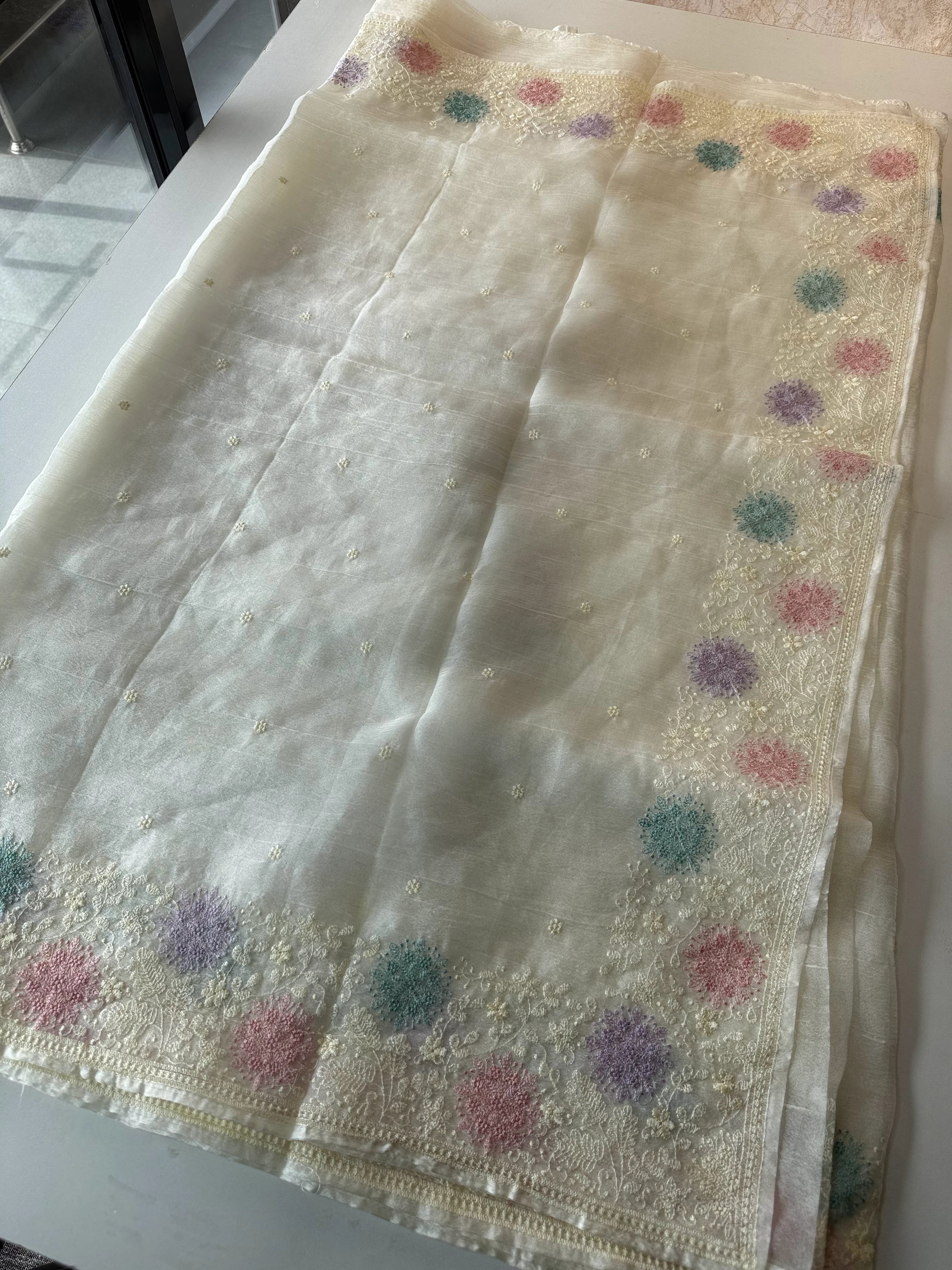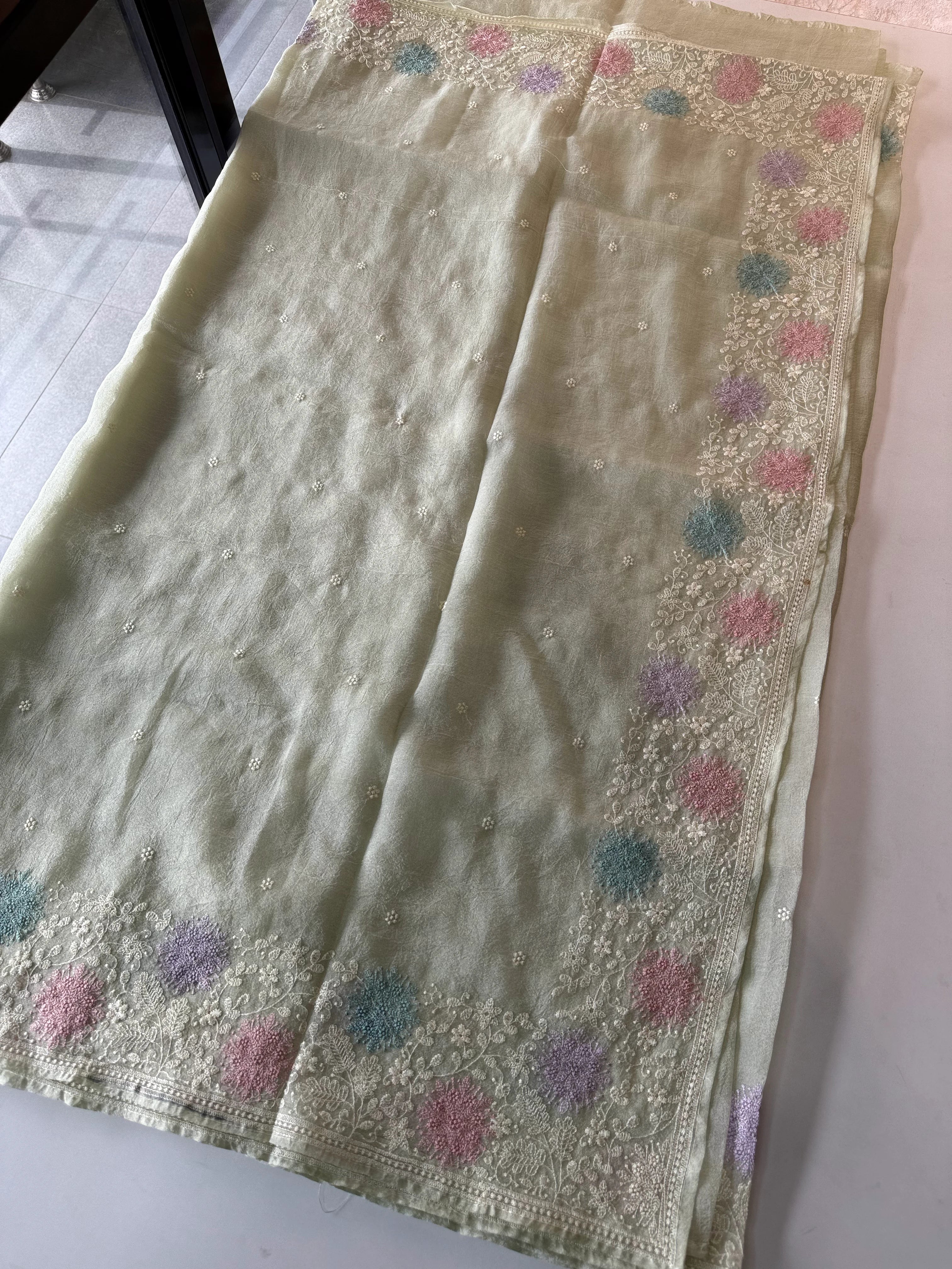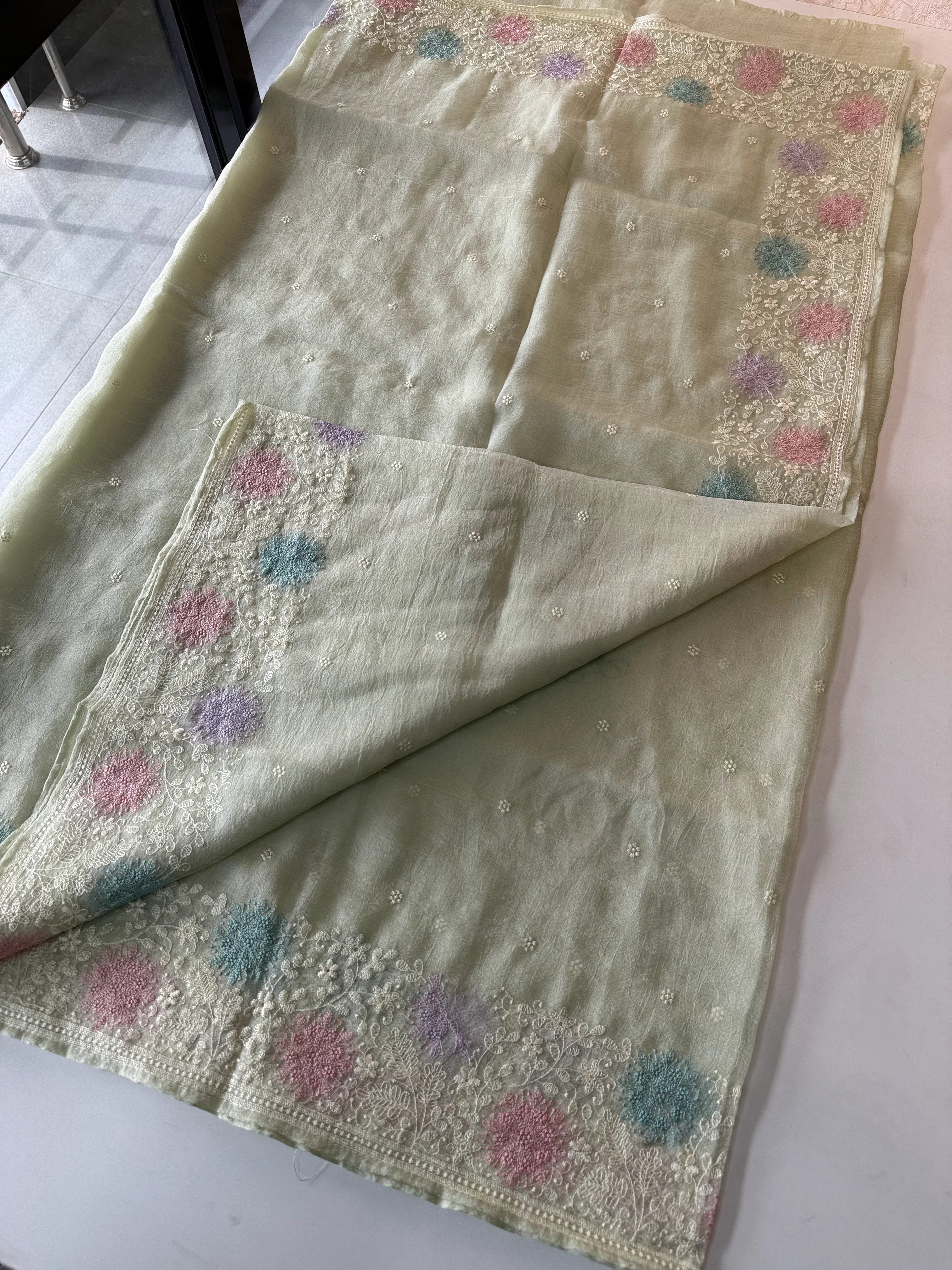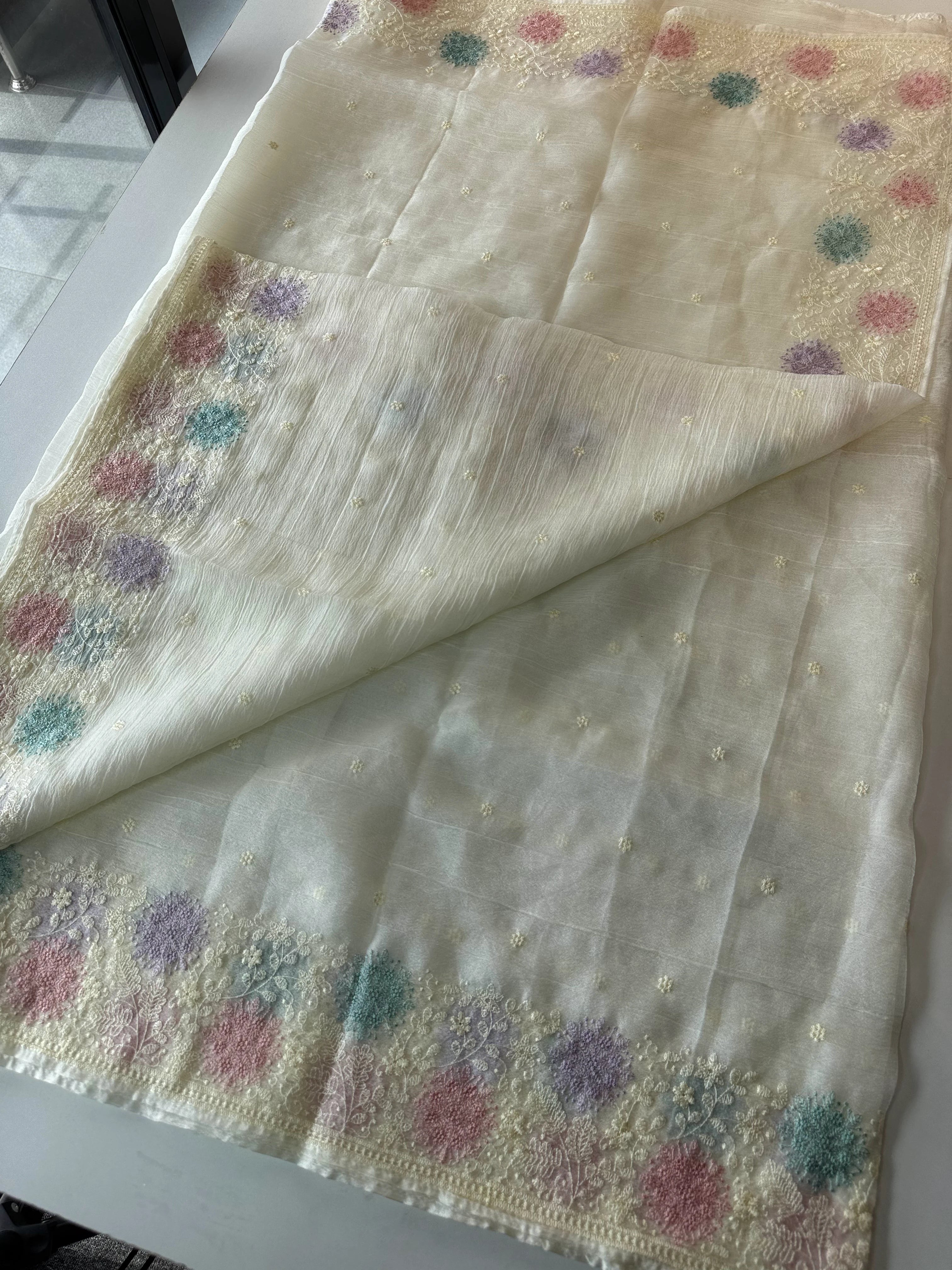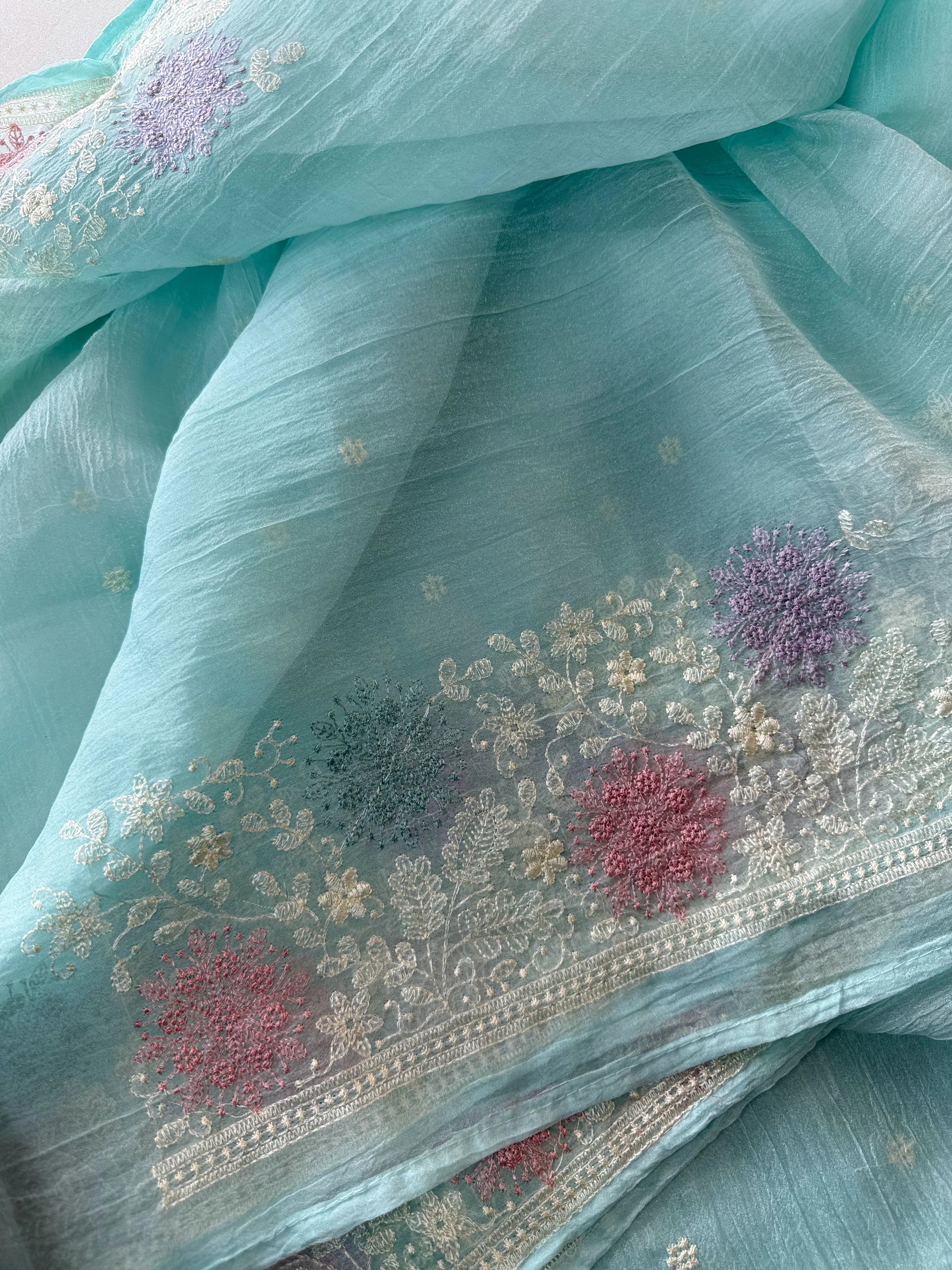 A brand-new texture in sarees – introducing mousam Crush! This fabric is feather-light, soft, and gracefully flowy, with a subtle sheer finish that adds elegance. Designed with a beautifully worked border, it’s perfect for party wear in a budget-friendly range.