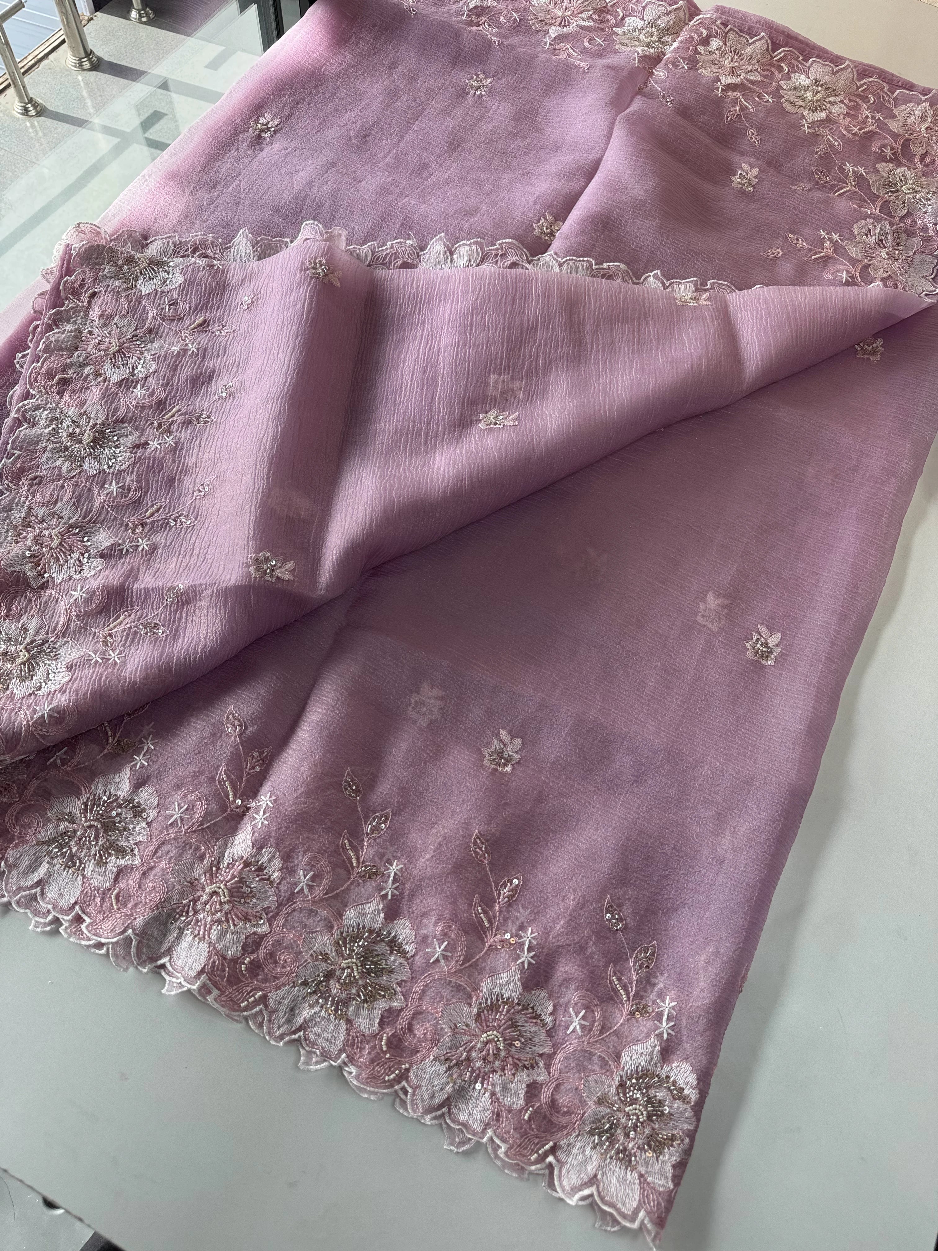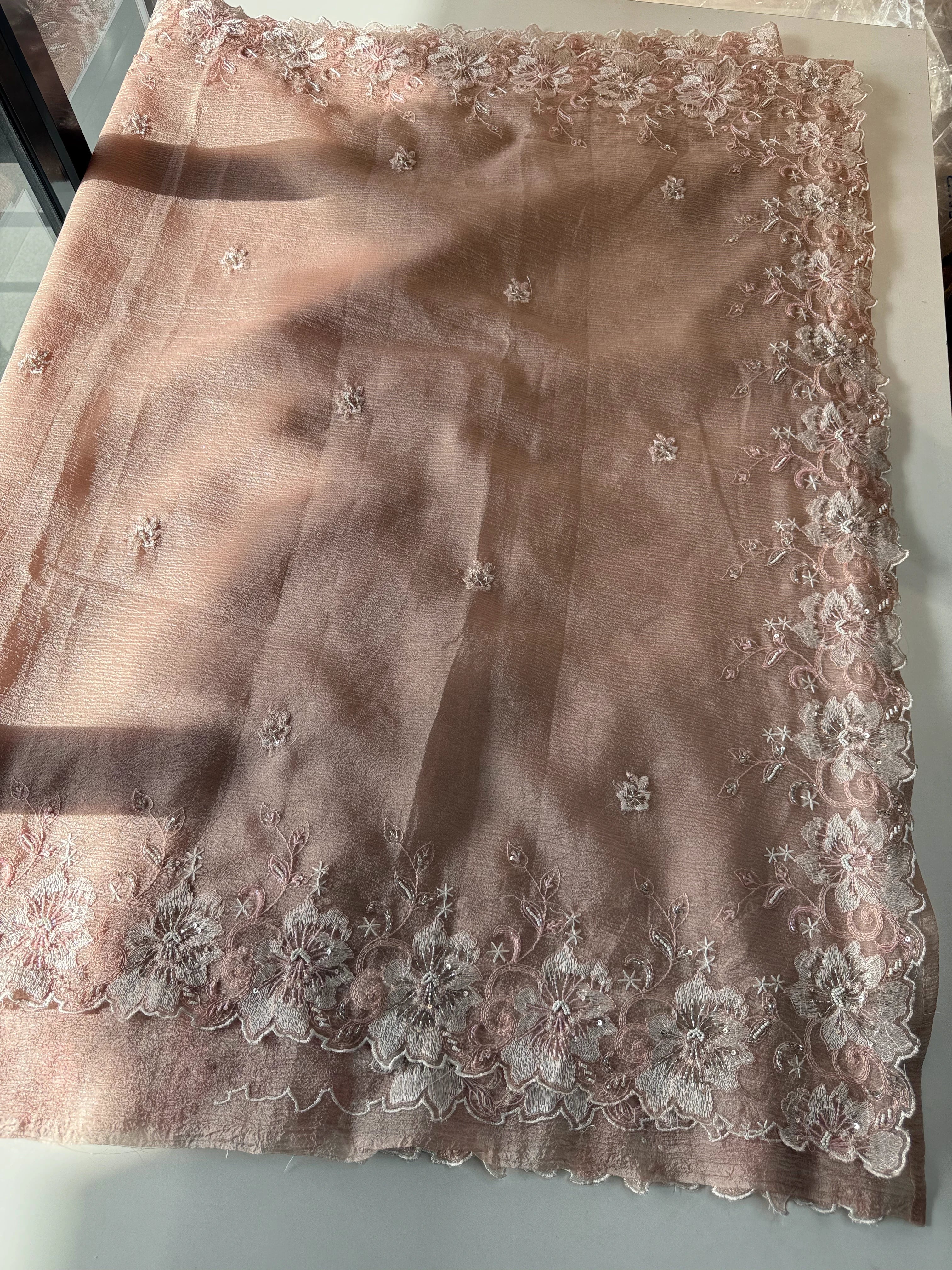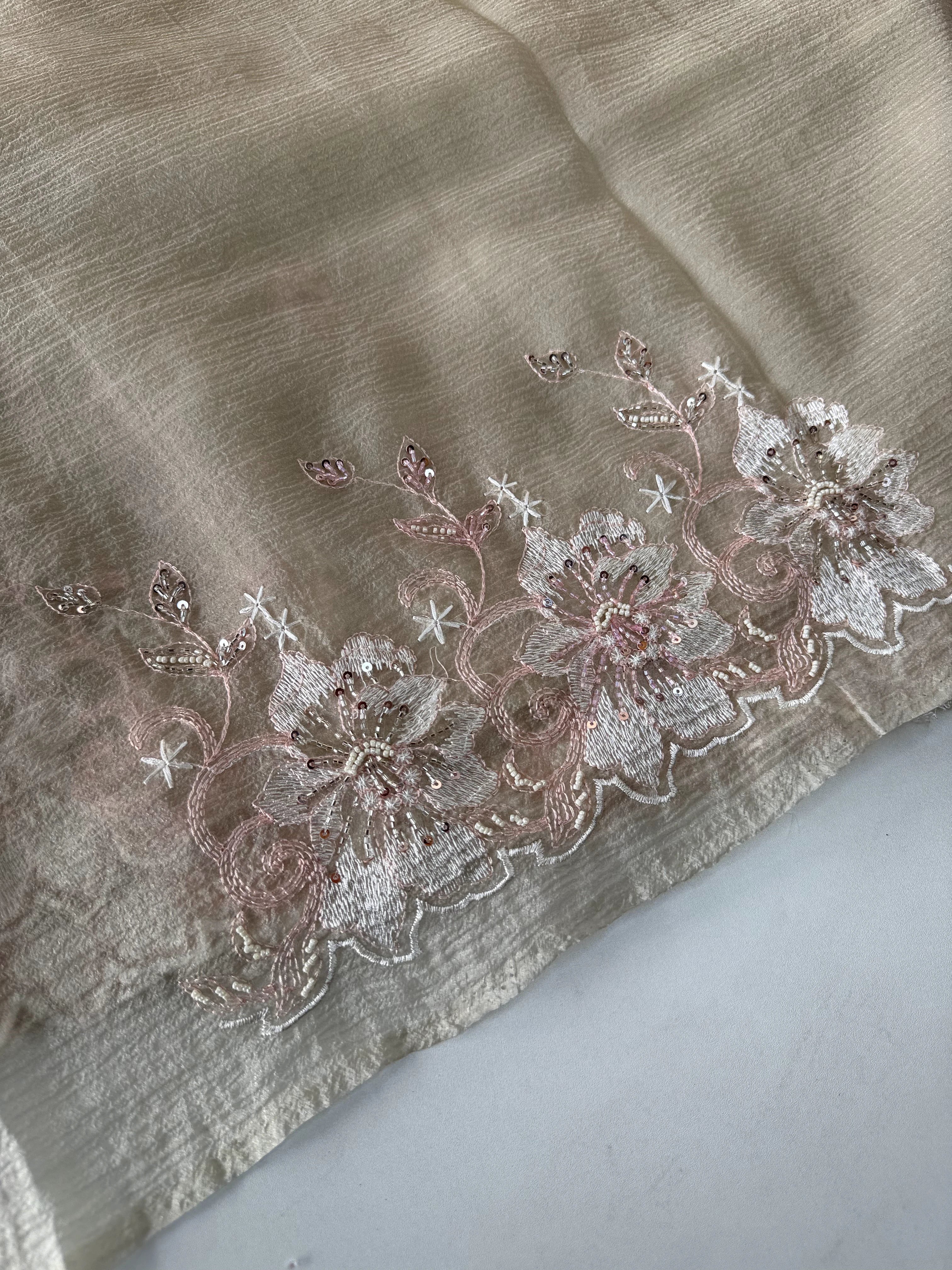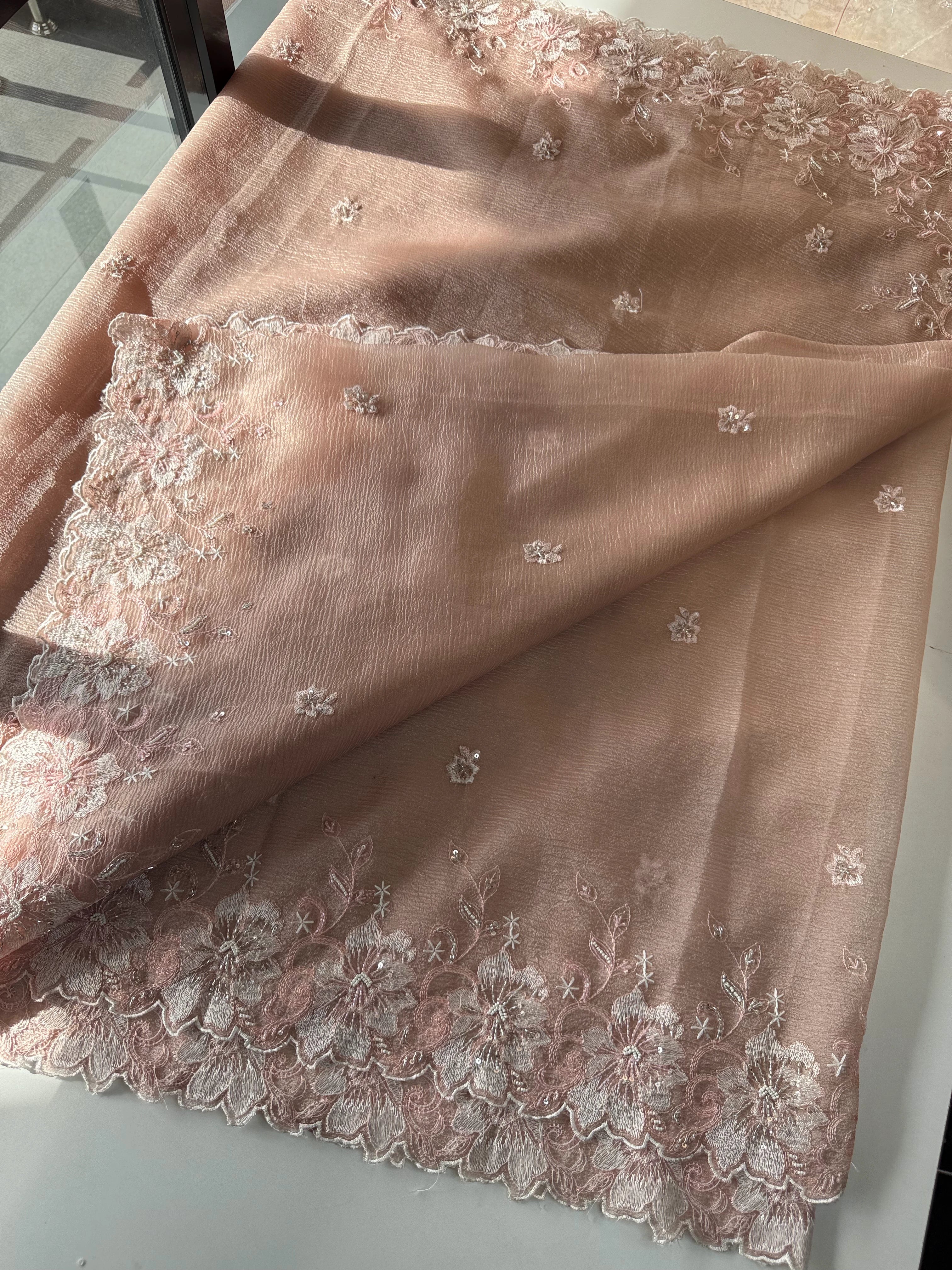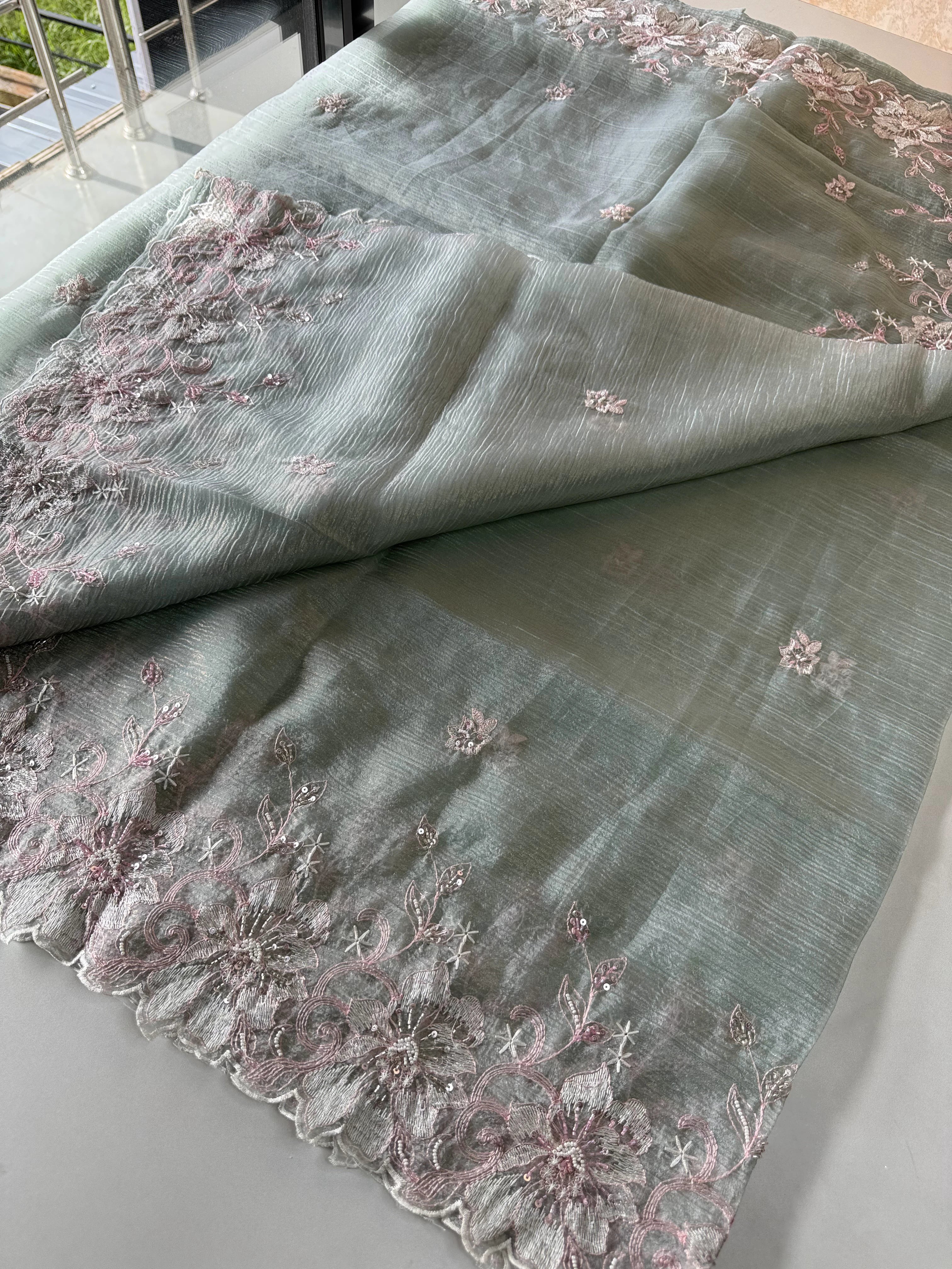 Fabric:crushed crape saree with intricate hand worked boarder with hand worked butta spread