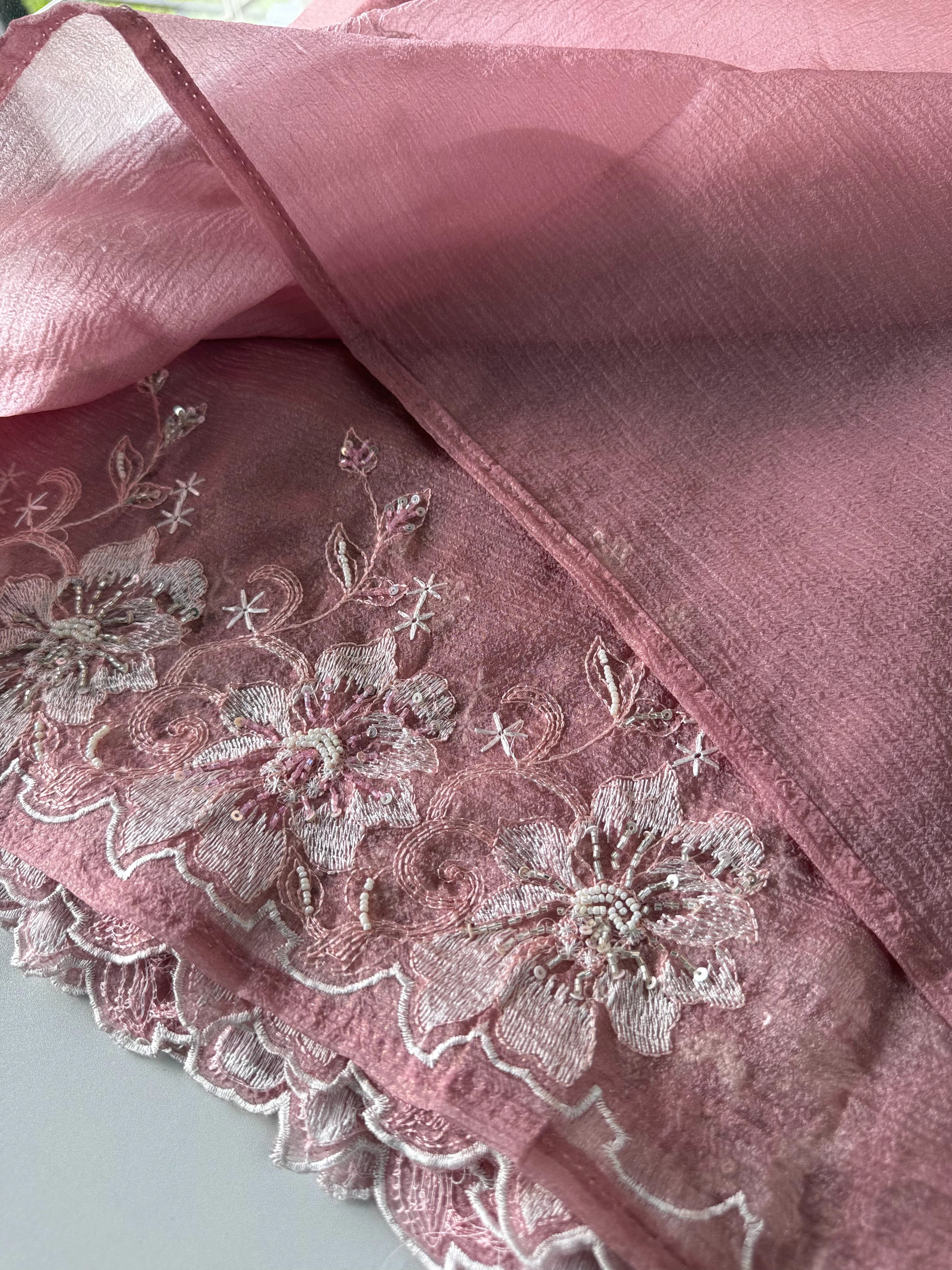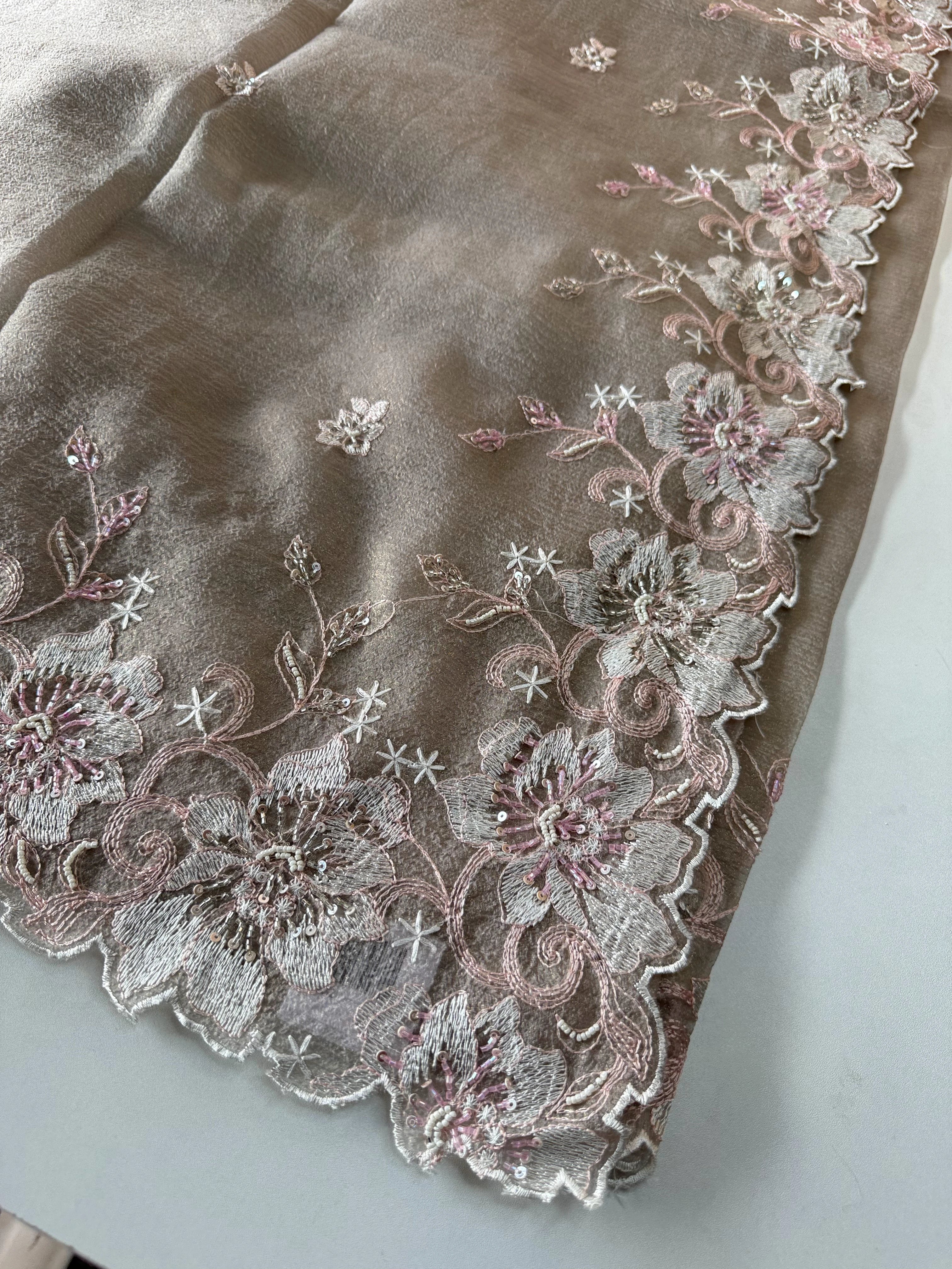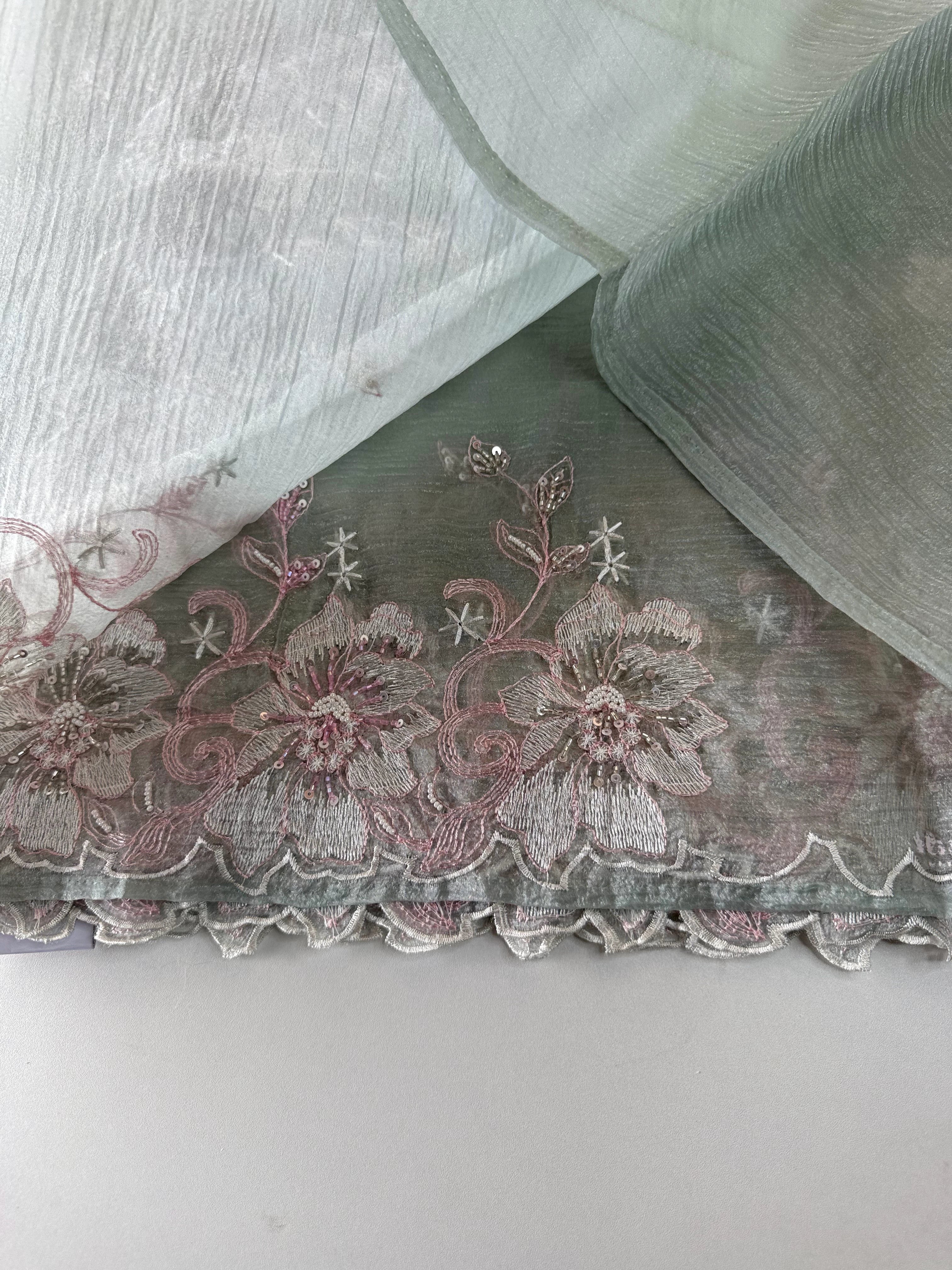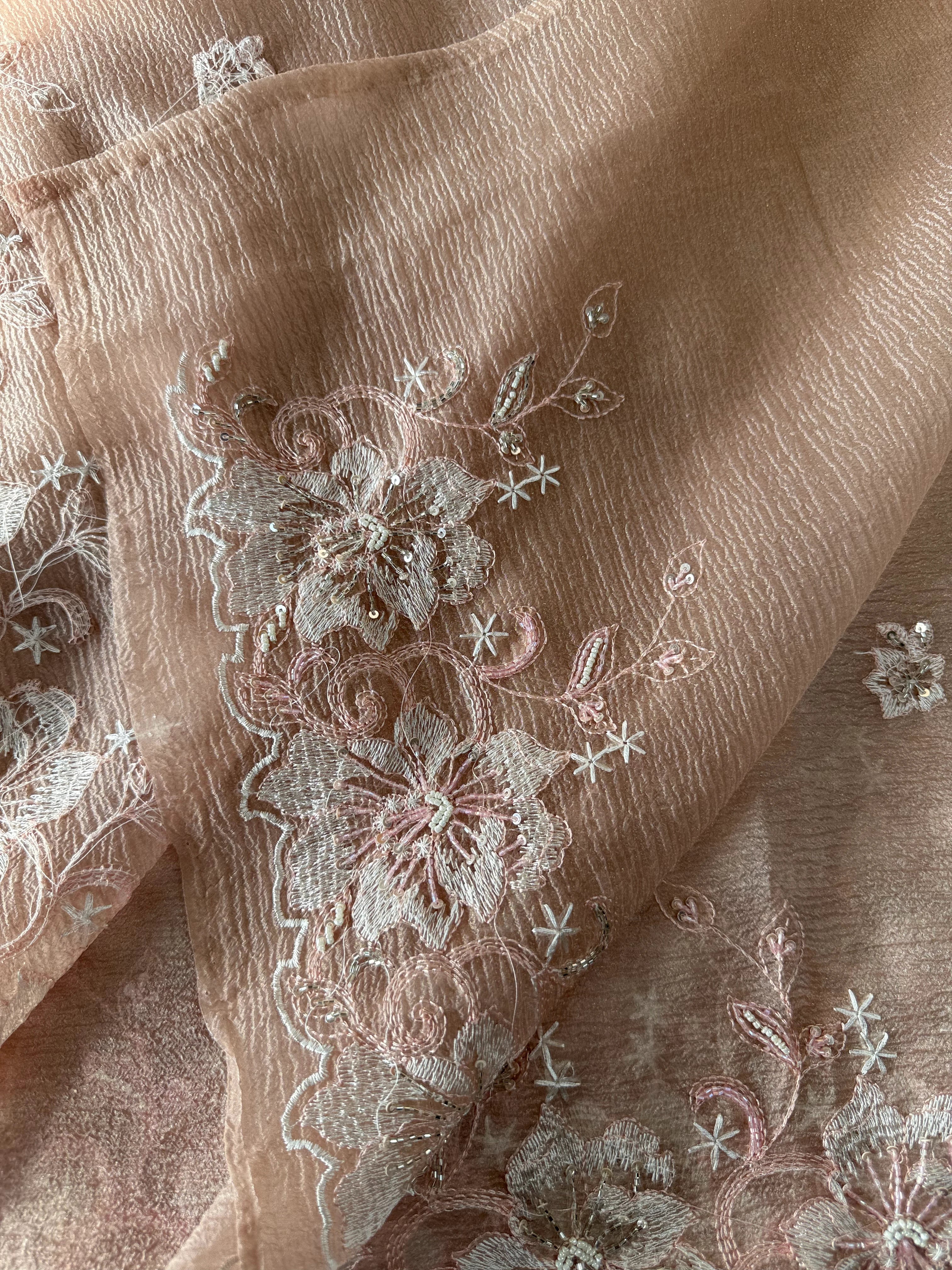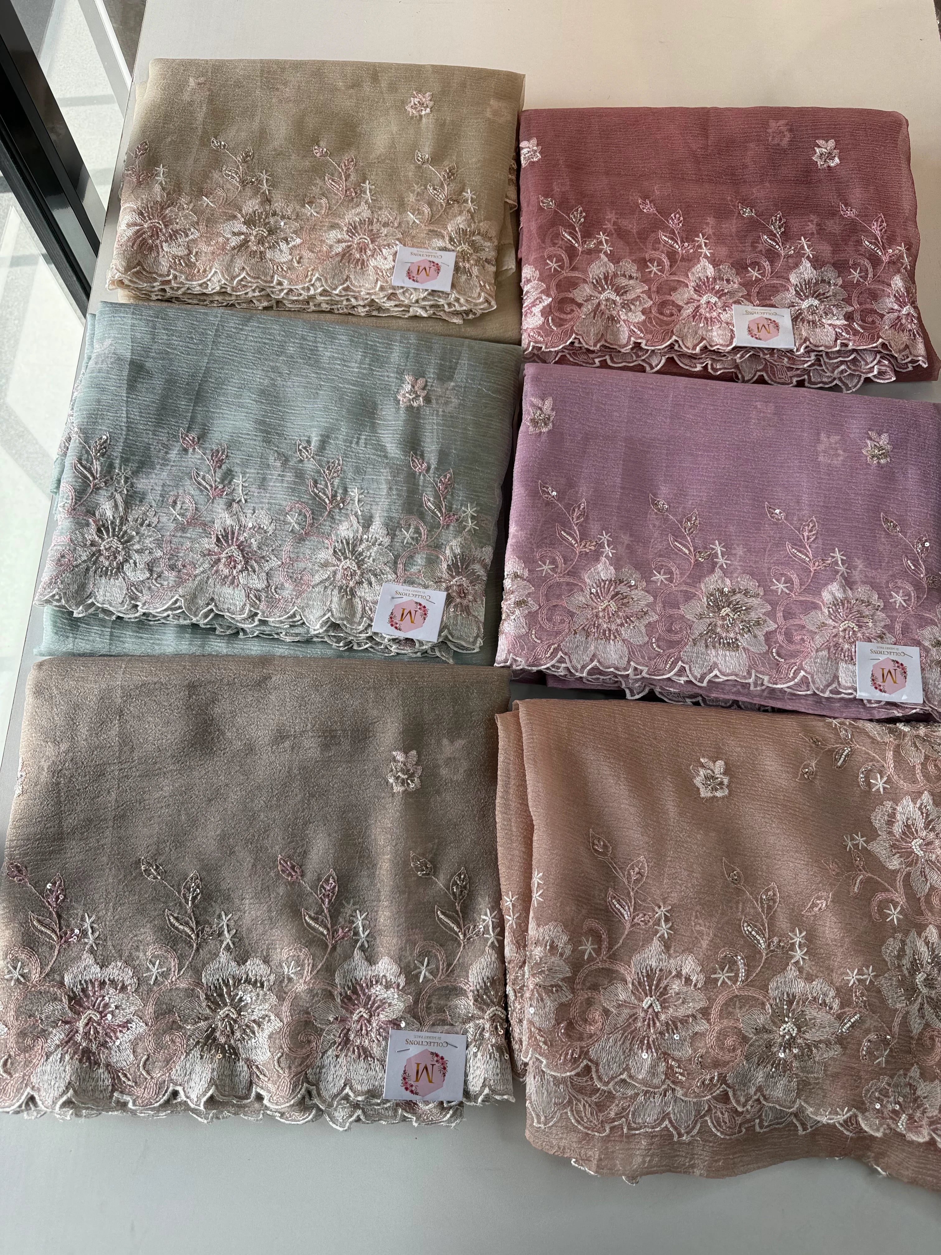 Fabric:crushed crape saree with intricate hand worked boarder with hand worked butta spread