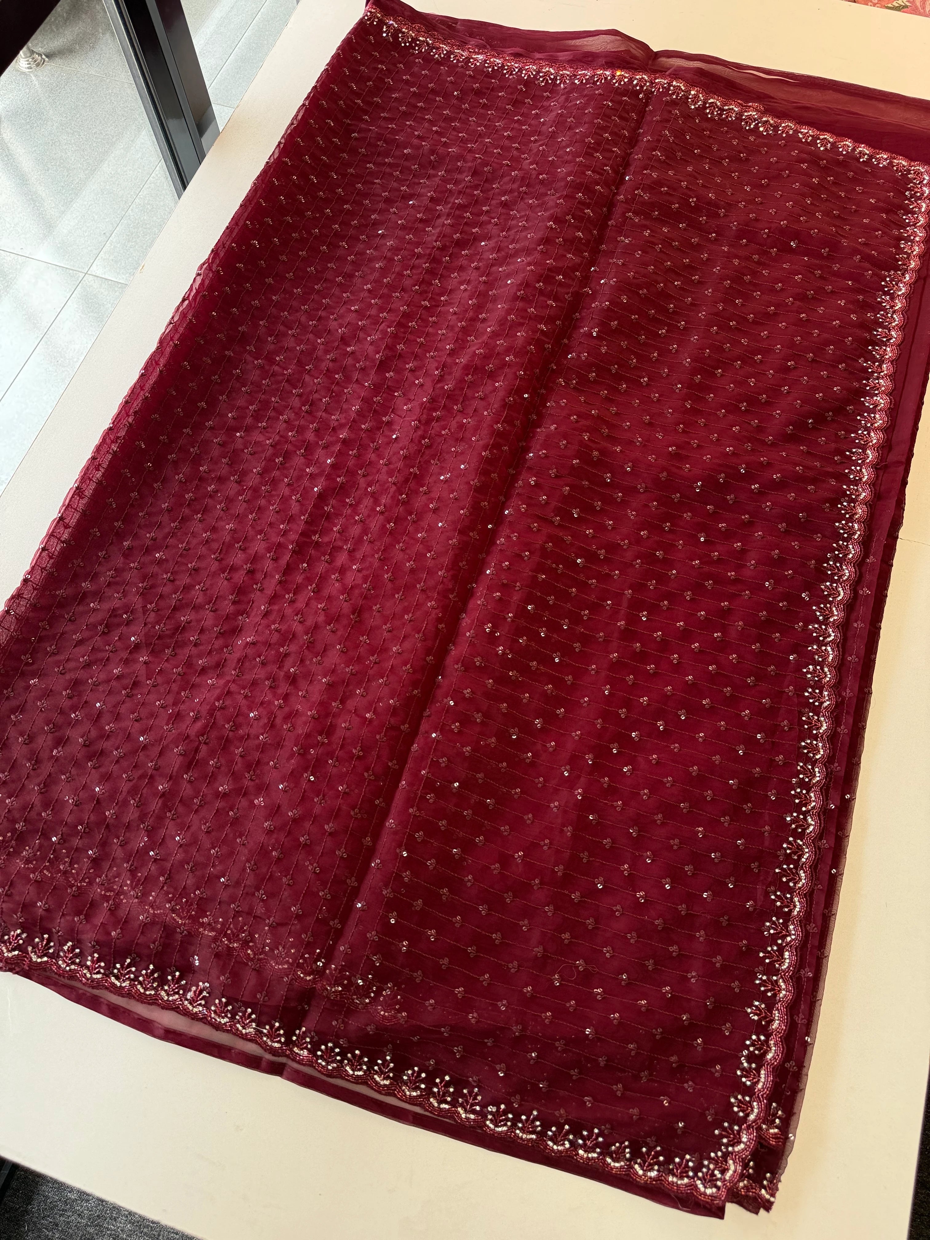 Comes with a running blouse piece in matching tone, making it perfect for festive occasions, parties, and celebrations. Lightweight yet dressy — a perfect blend of comfort and sophistication.