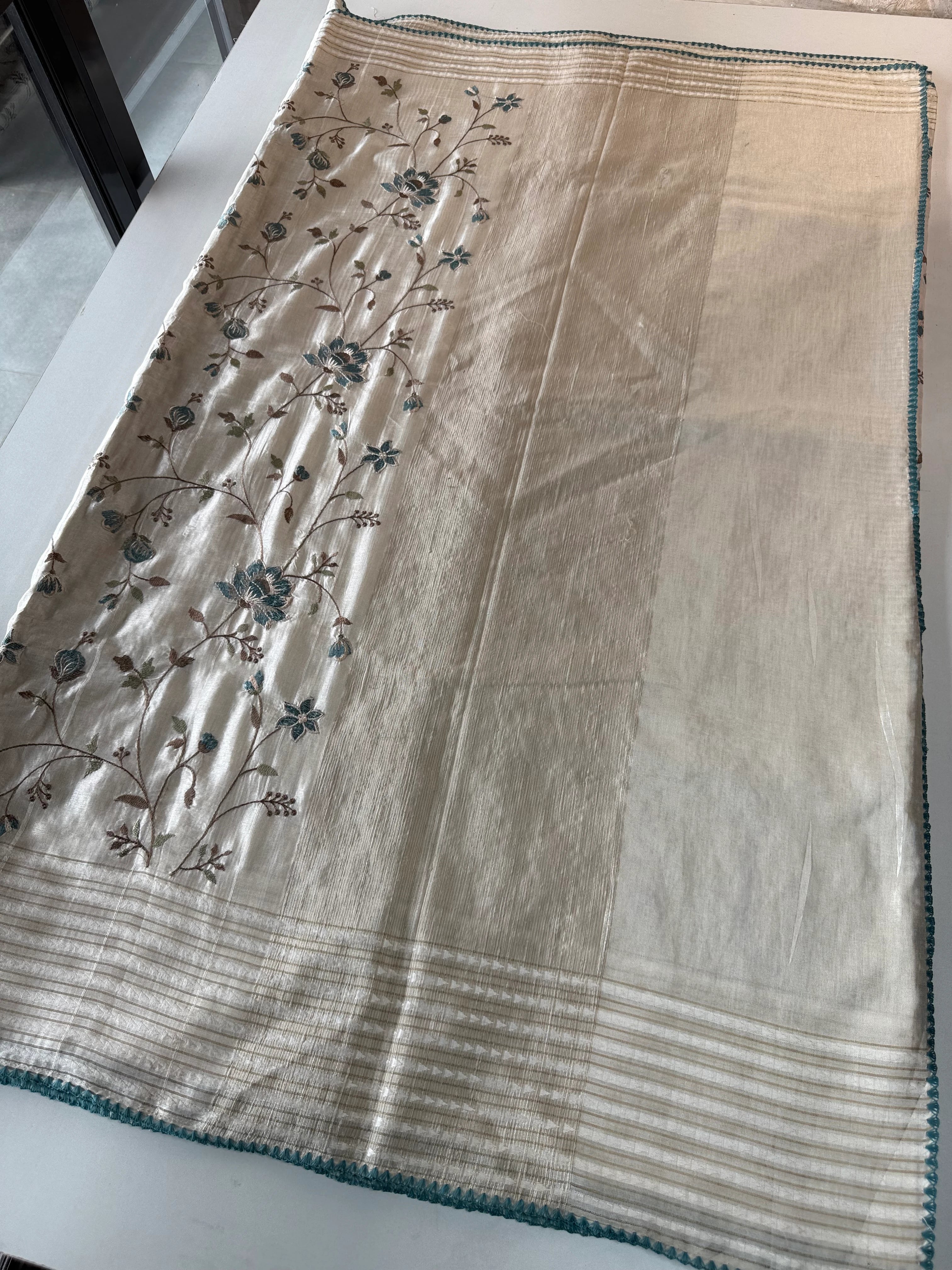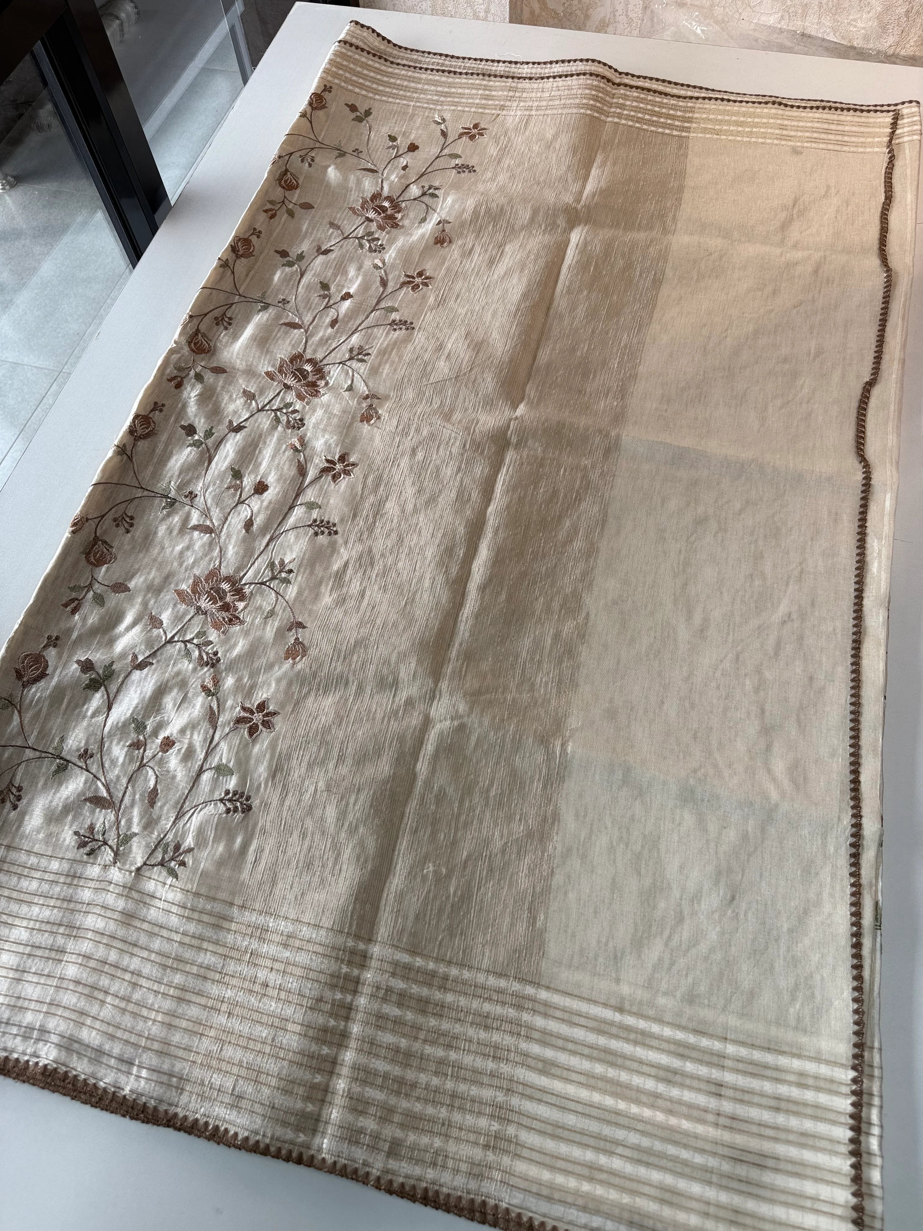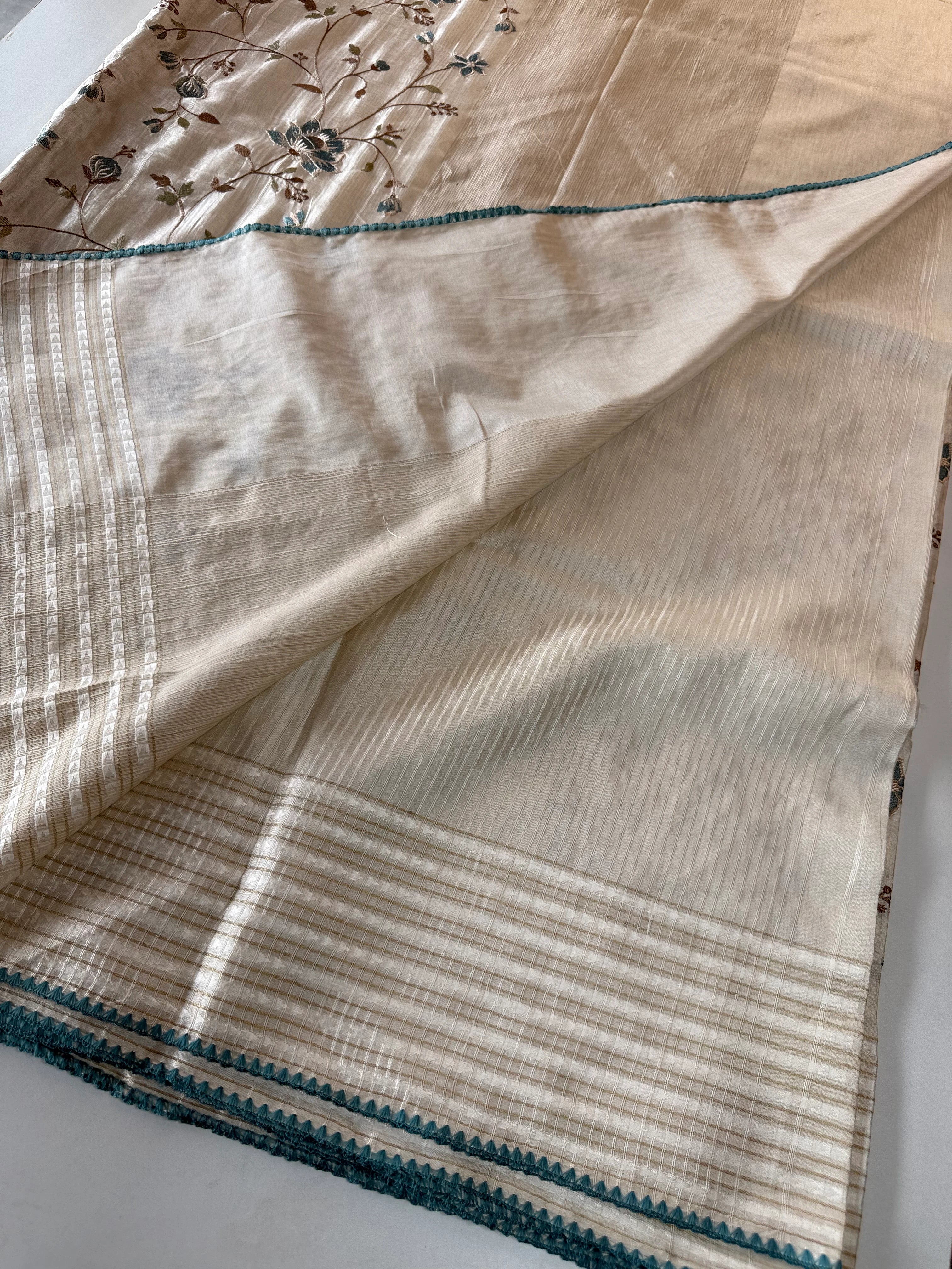 Comes with a running blouse piece in matching Semi-Tussar fabric, designed for a perfectly coordinated look. Moderately heavy yet easy to manage, this saree is non-transparent and ideal for festive gatherings, functions, or elegant evening wear.