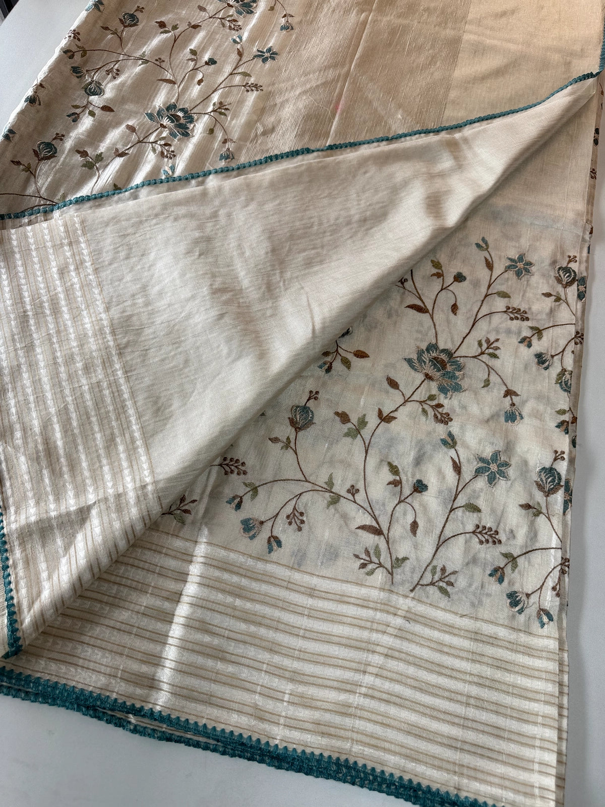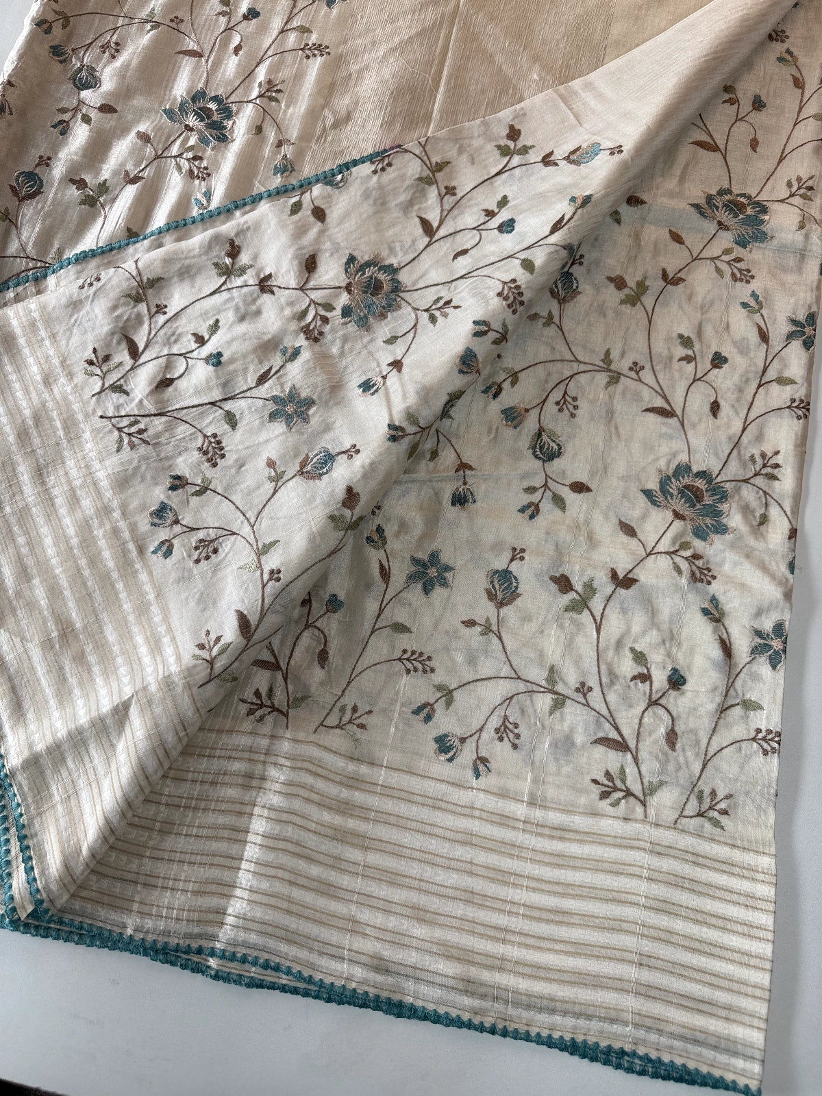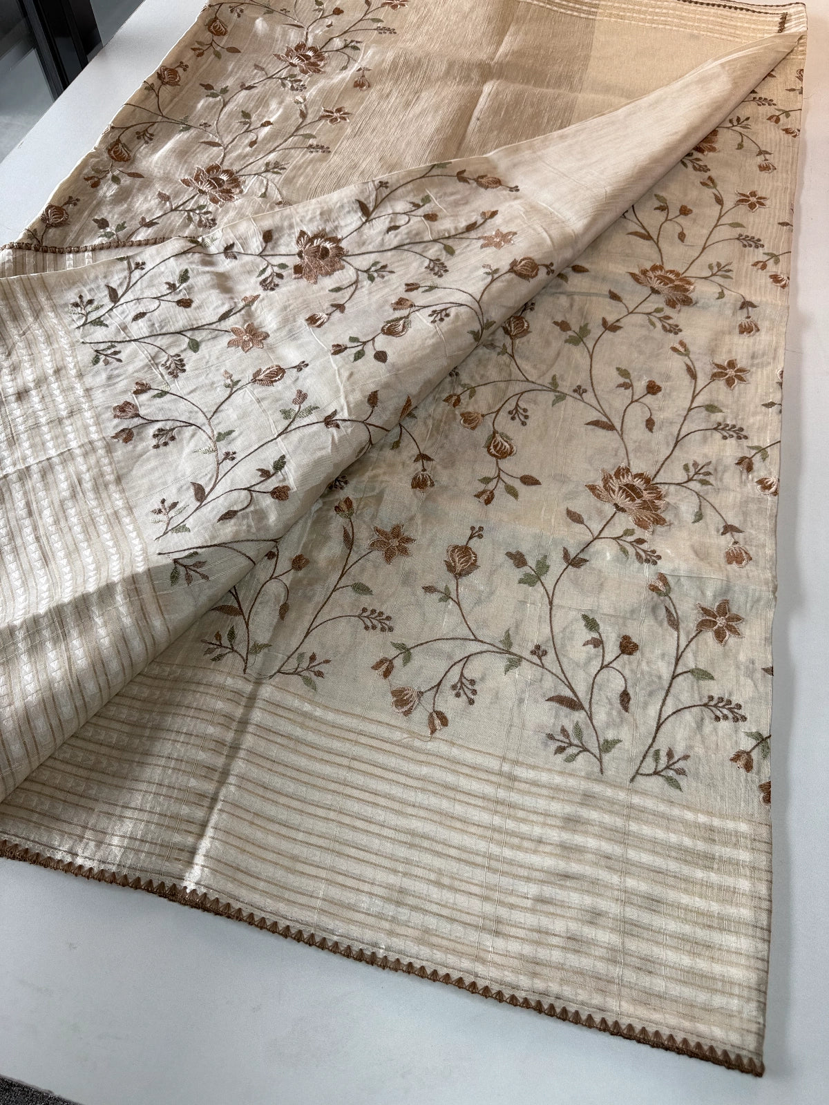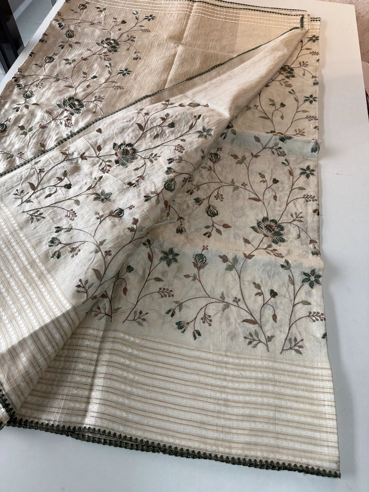 Comes with a running blouse piece in matching Semi-Tussar fabric, designed for a perfectly coordinated look. Moderately heavy yet easy to manage, this saree is non-transparent and ideal for festive gatherings, functions, or elegant evening wear.
