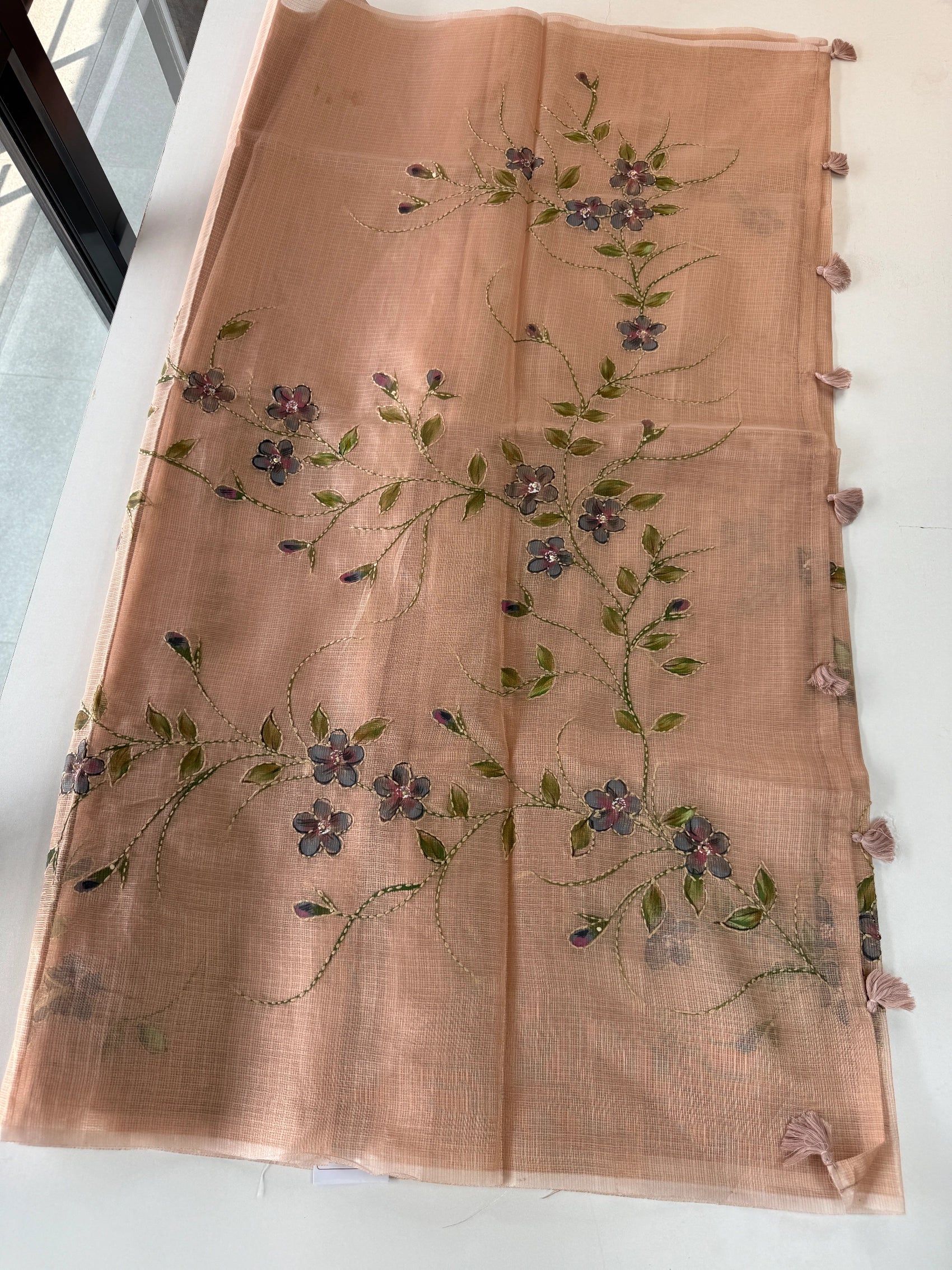 Net Kota Tissue Blend Saree with Hand-Painted Floral Design ✨